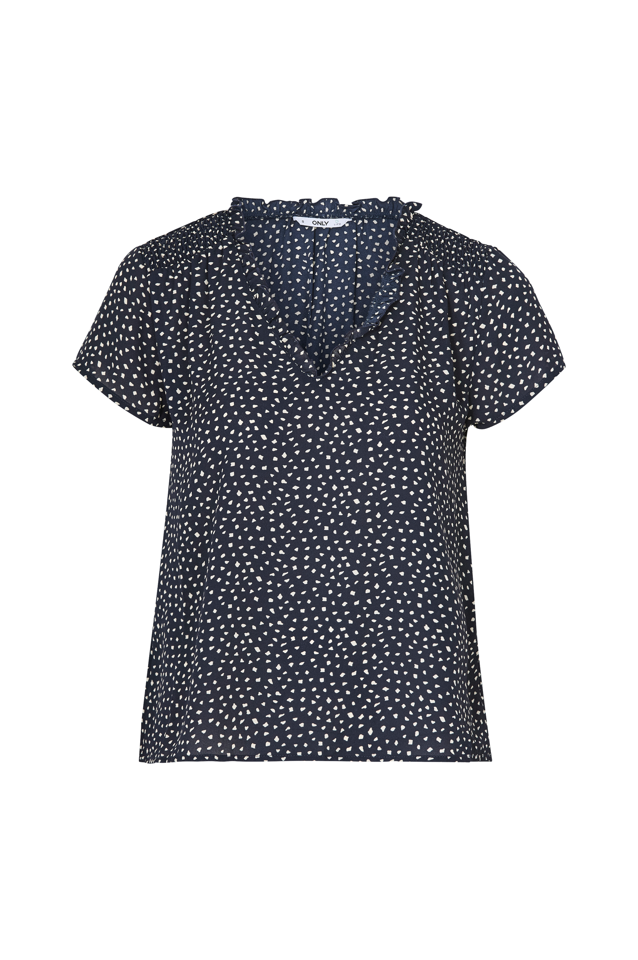 • Kort ærme• V-udskæring med flæse• Smock på skuldrene• Produktet indeholder genindvundet materiale, som genbruges for at reducere mængden af affald samtidigt med at der ikke anvendes nye ressourcer.