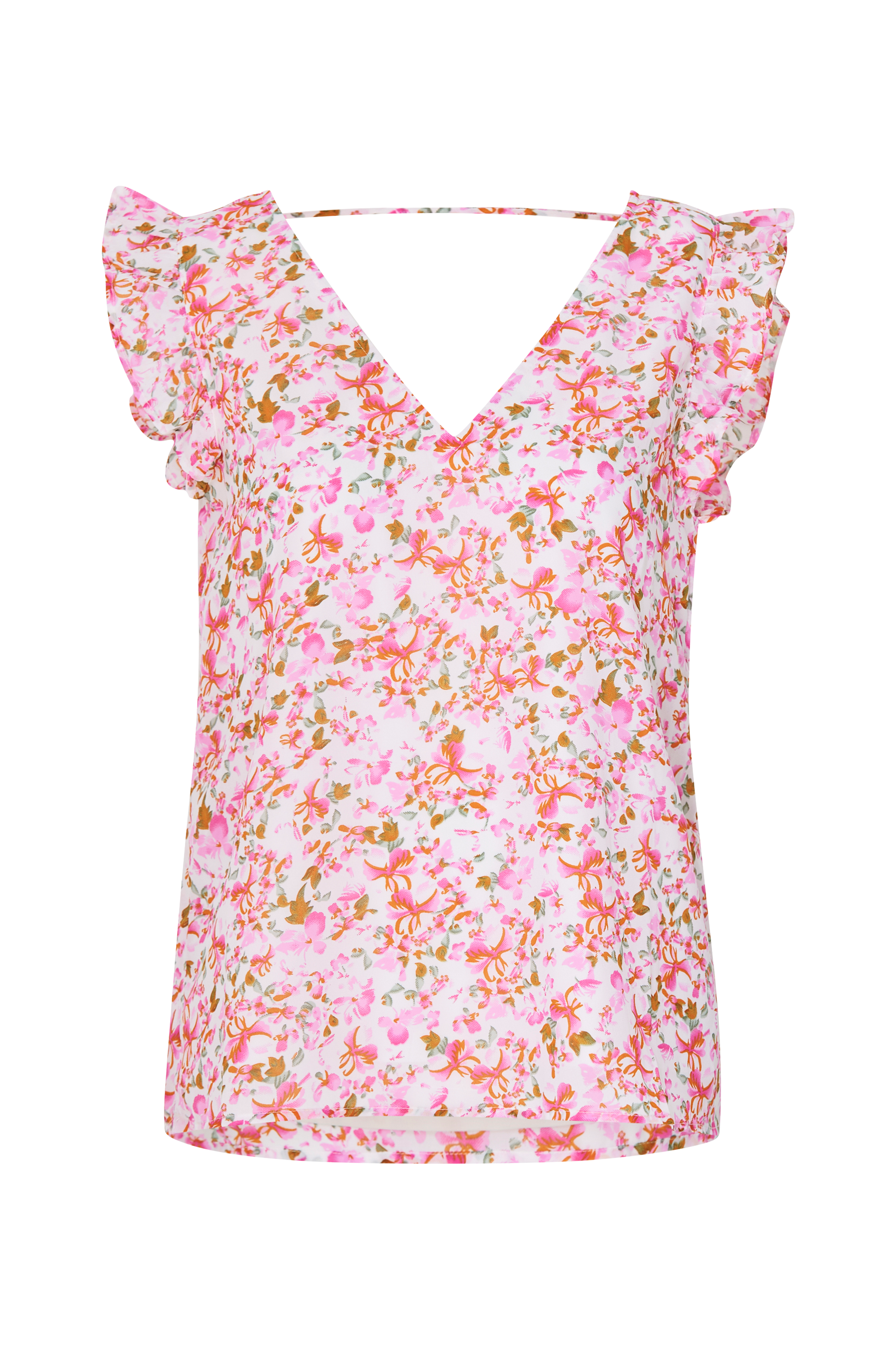 • V-udskæring foran og bagpå• Volanter på skuldrene• Tynd, vævet kvalitet• Trikotfor