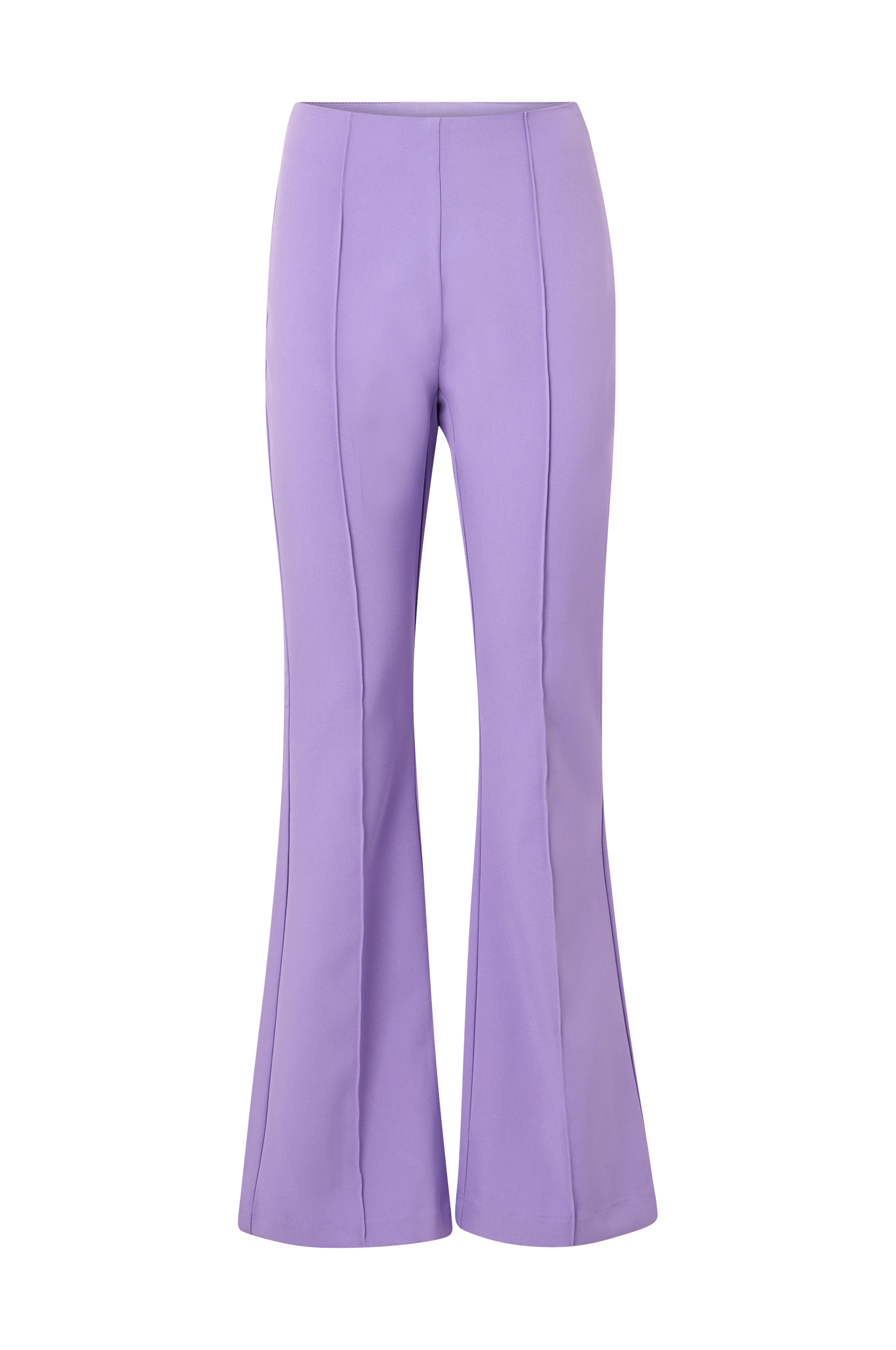 • Benafslutninger med svaj• Høj talje med skjult elastisk bånd• Syede pressefolder• Skjult lynlås i siden