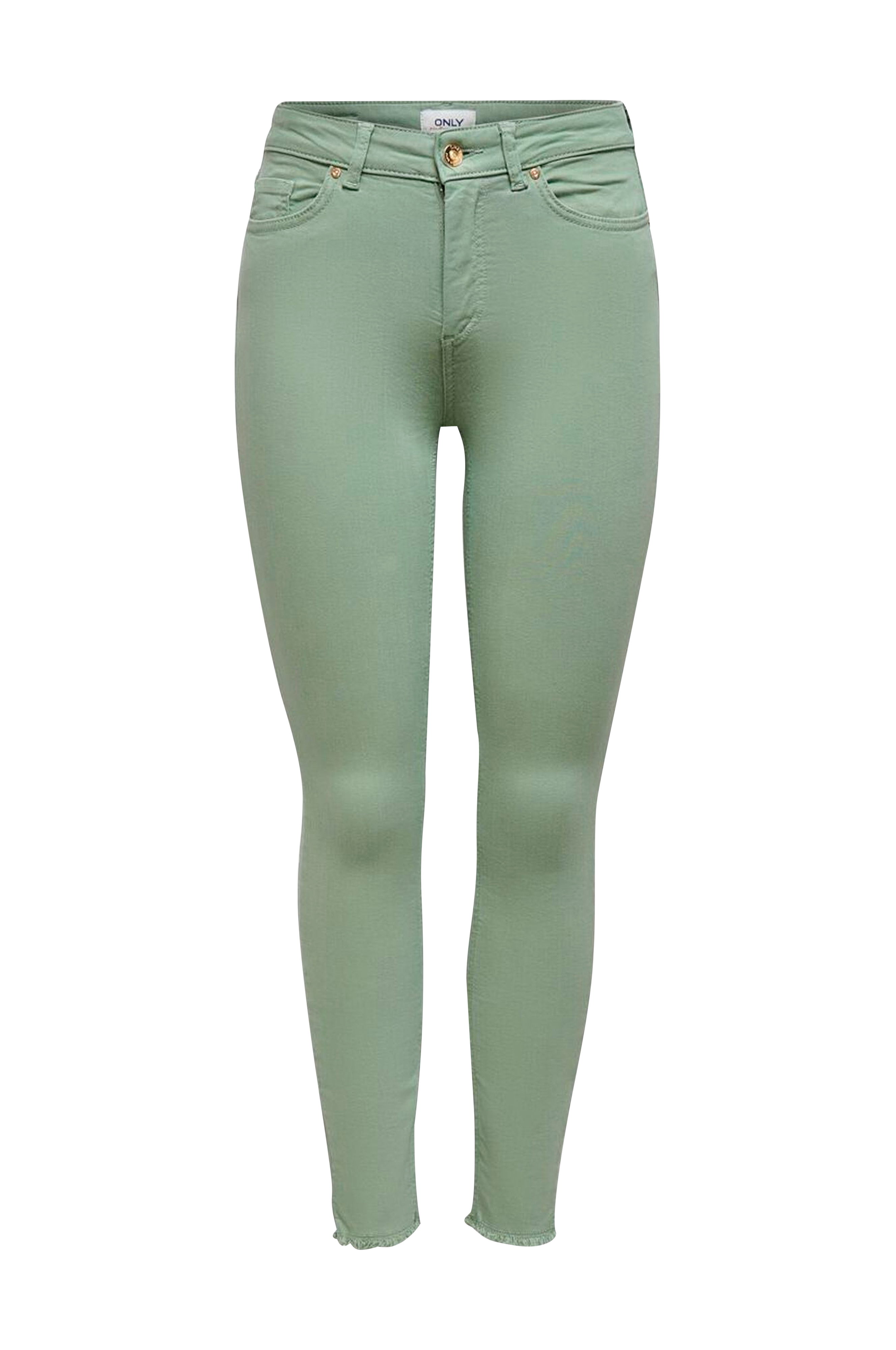 Bukser onlBlush Mid Skinny Ankle Raw Colour fra Only i smal model med afklippet, frynset benkant, fem lommer og lynlåsgylp. Fremstillet af blød stretchkvalitet.