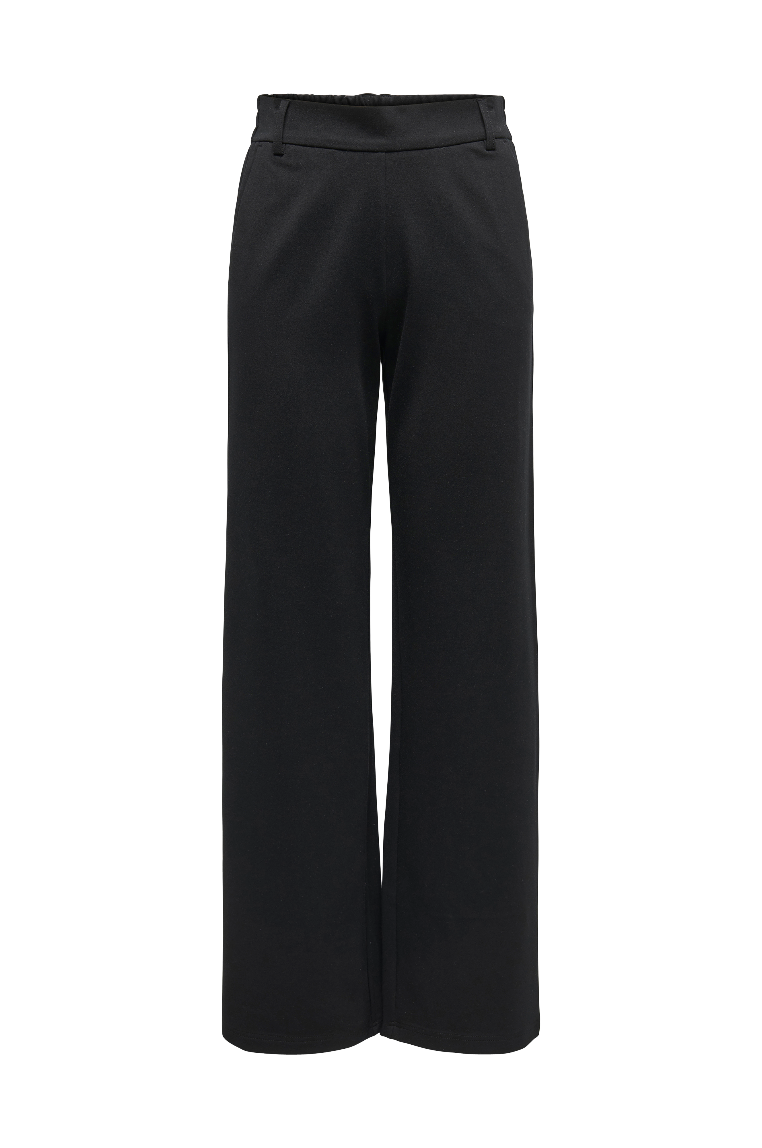 • Bukser i blødt, elastisk materiale med lige bukseben • Elastik bagpå ved taljen • Bælteløkke • Lommer i siderne • Indre benlængde: 71 cm i størrelse S