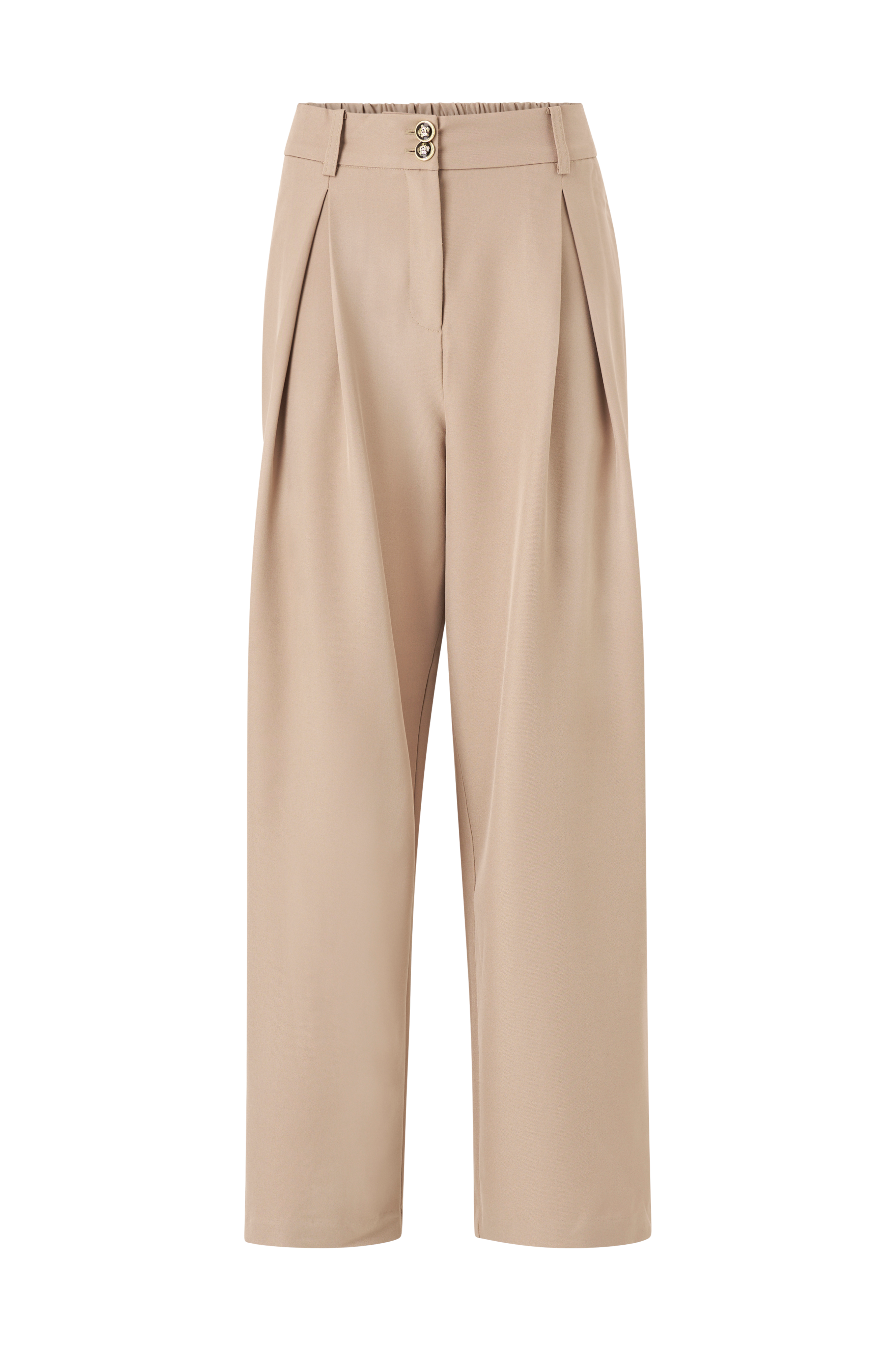• Brede bukser• Løs pasform• Lægge ved taljen• Lommer i siderne• Snydelomme bagpå• Elastisk bånd bagpå ved taljen• Gylp med lynlås