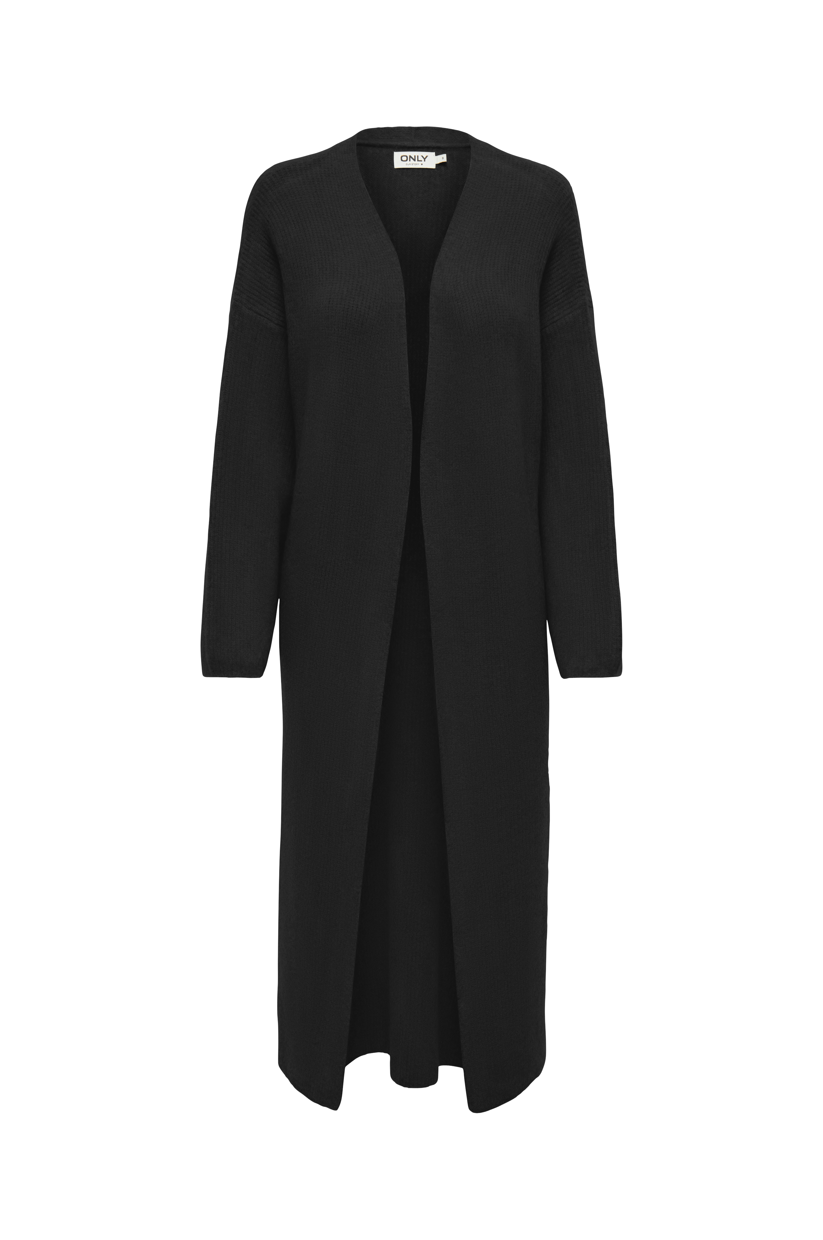 • Lang, ribstrikket model• Nedsænket skulder med langt ærme• Uden at knappe