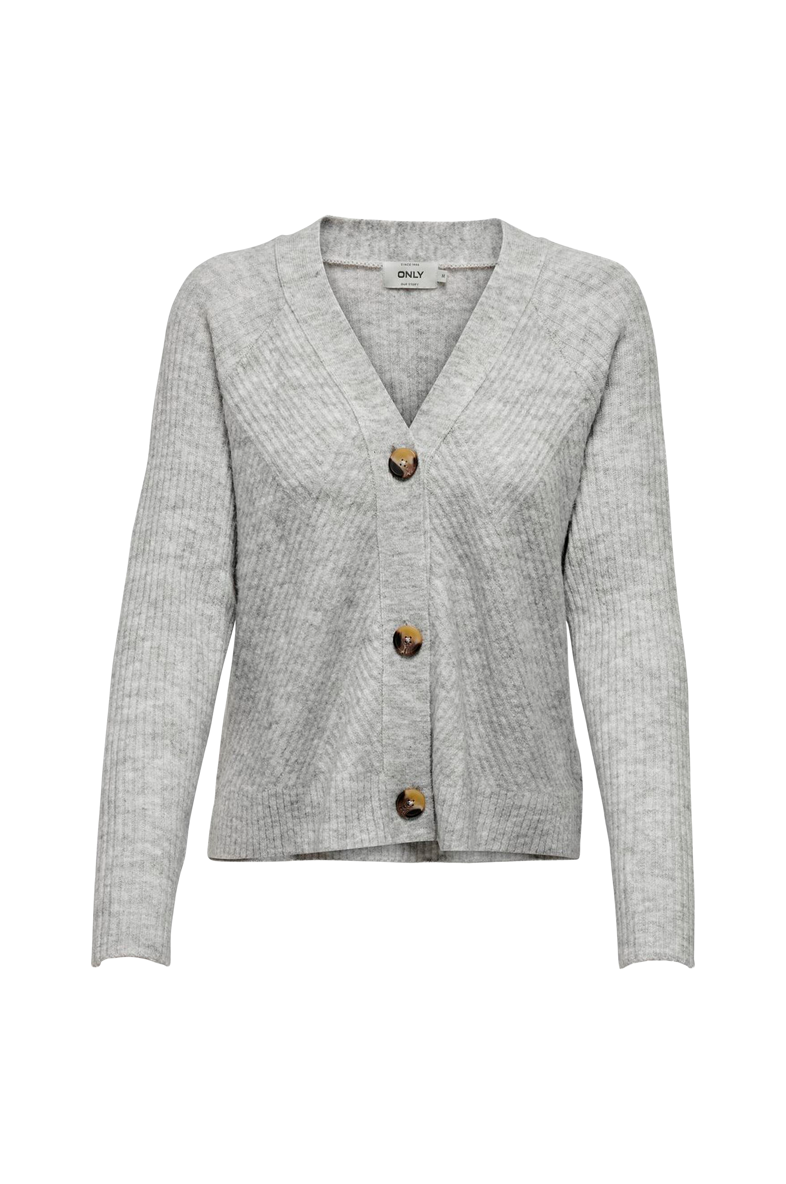Cardigan onlCarol L/S Cardigan Knt fra Only i noget kortere model med firkantet pasform, v-udskæring og knapper foran. Ribstrik i blød kvalitet.