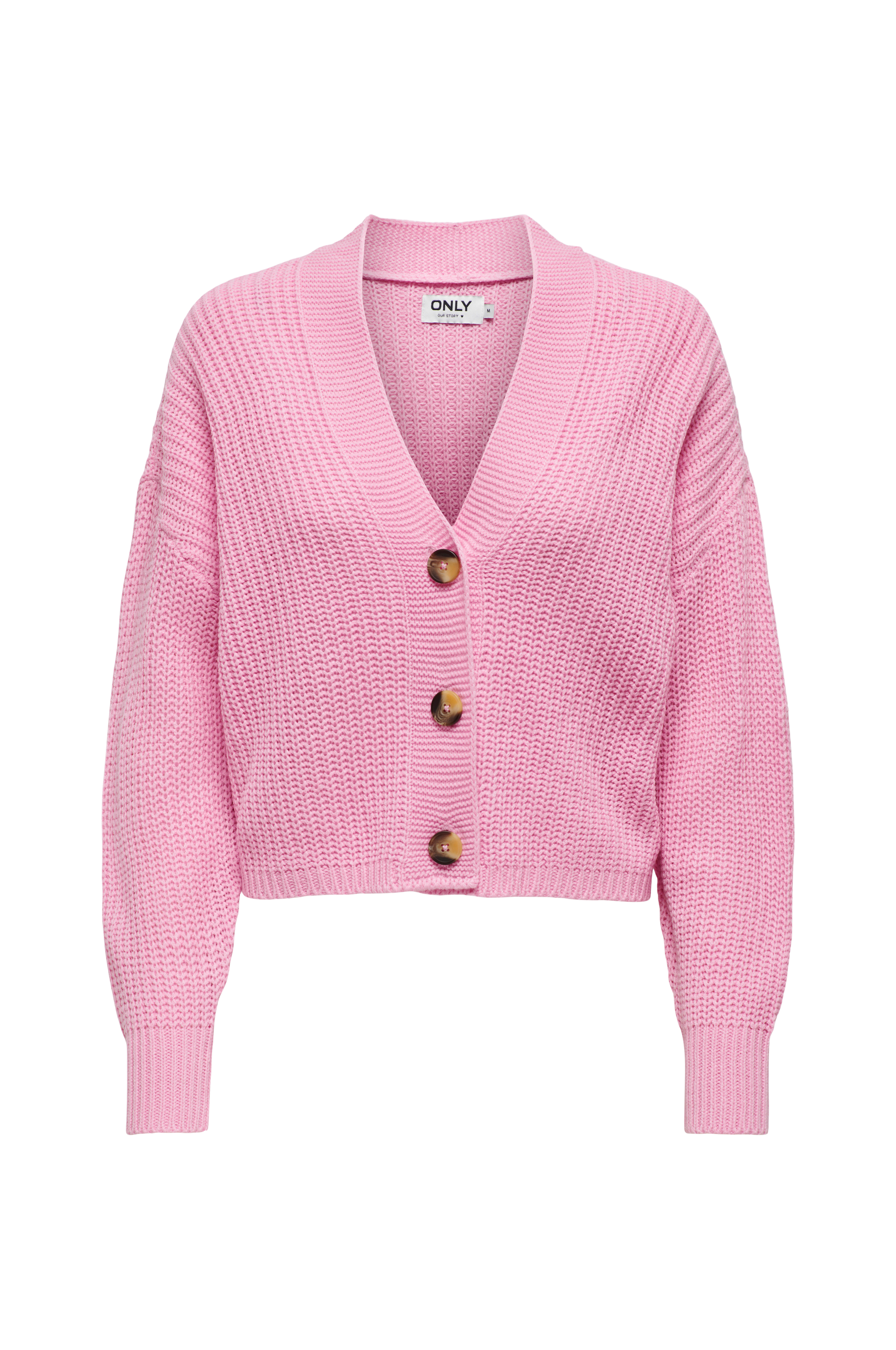 • Croppet, bred model• V-udskæring• Knapper foran• Nedsænkede skuldre• Strikket kvalitet