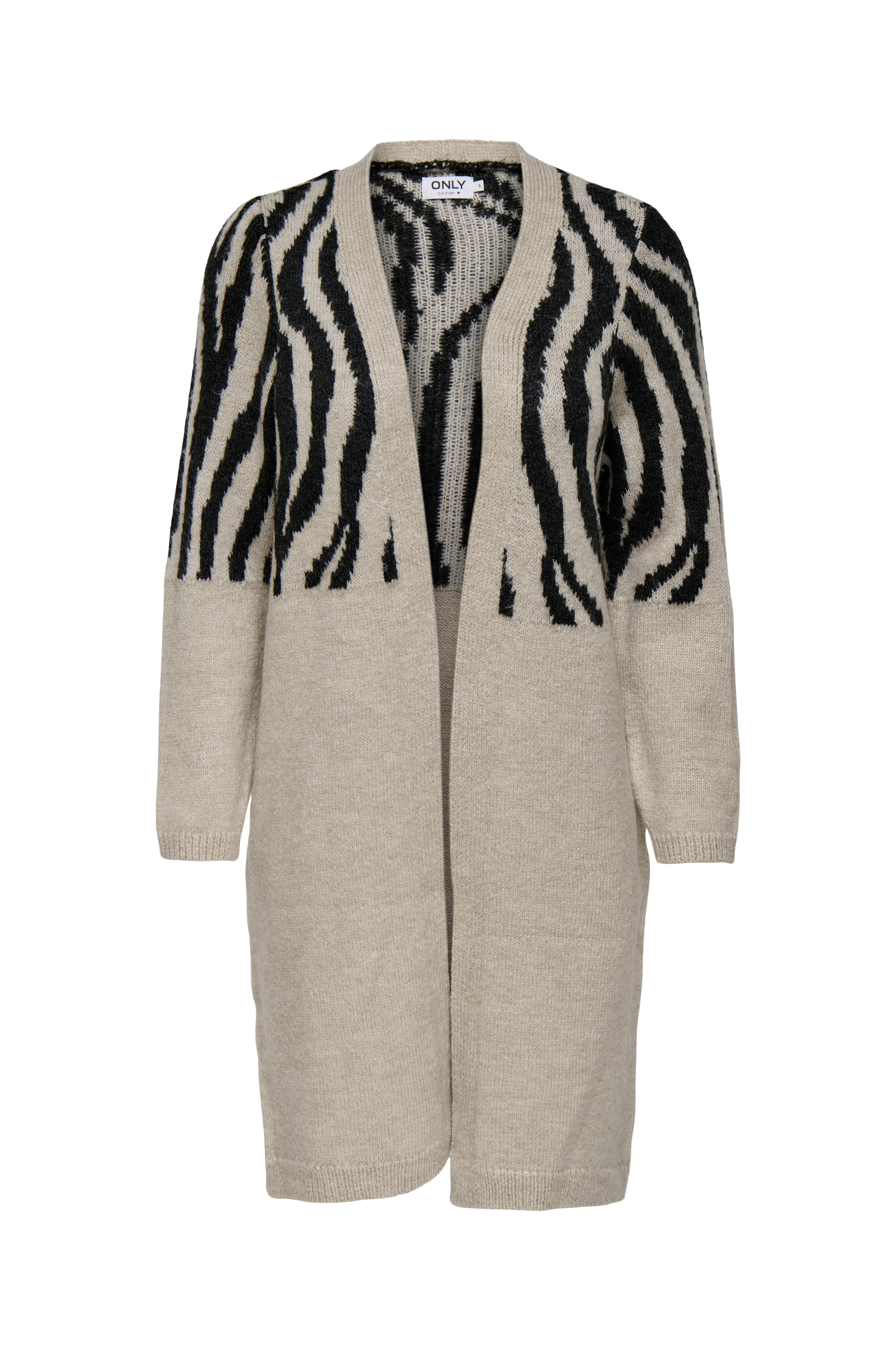 • Lang, uden knaplukning model• Langt ærme med ribstrik ved manchetterne• Ribstrik ved nederste kant