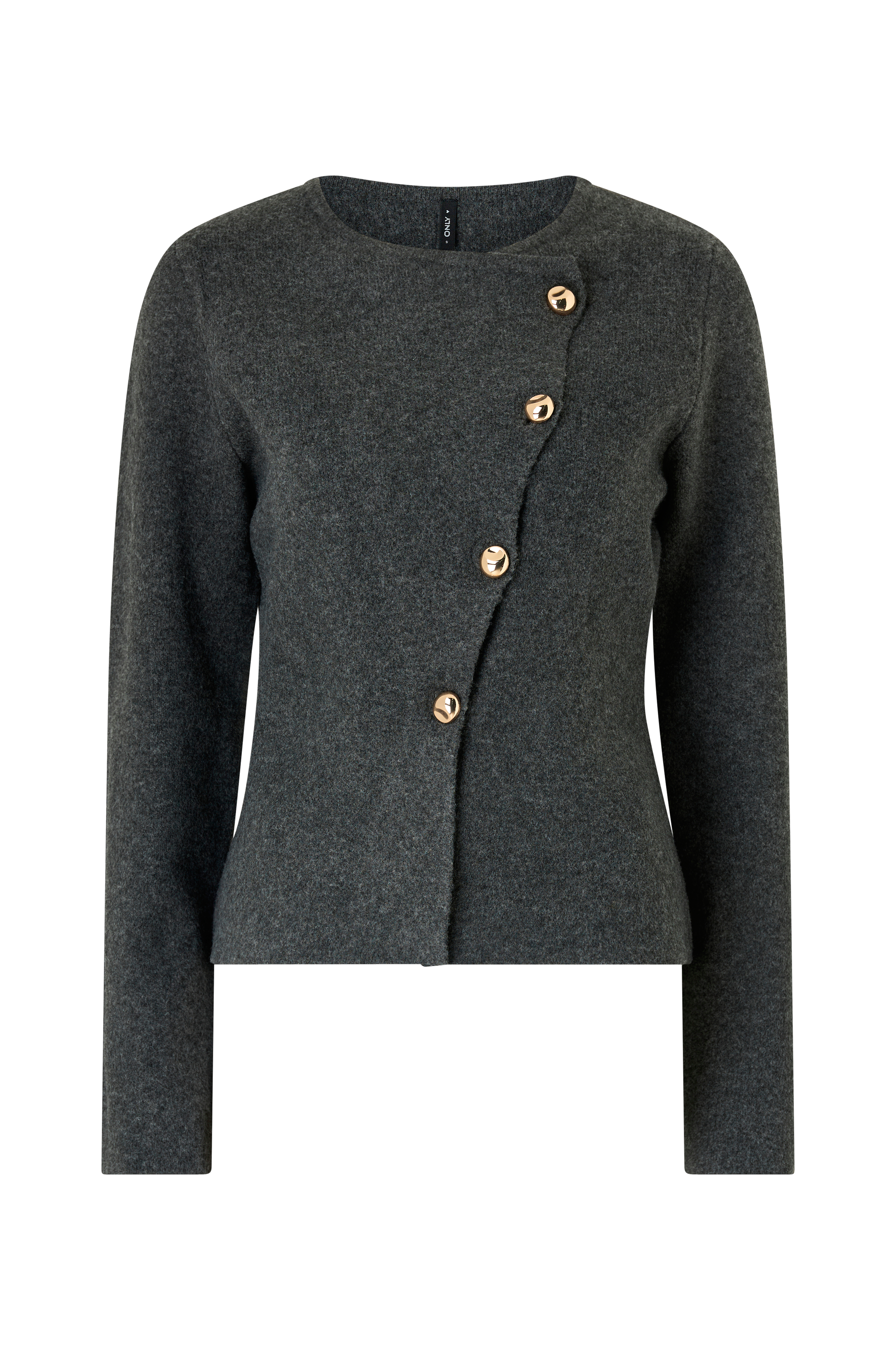 • Fintstrikket cardigan• Rund halsudskæring• Asymmetrisk knaplukning• Normal pasform