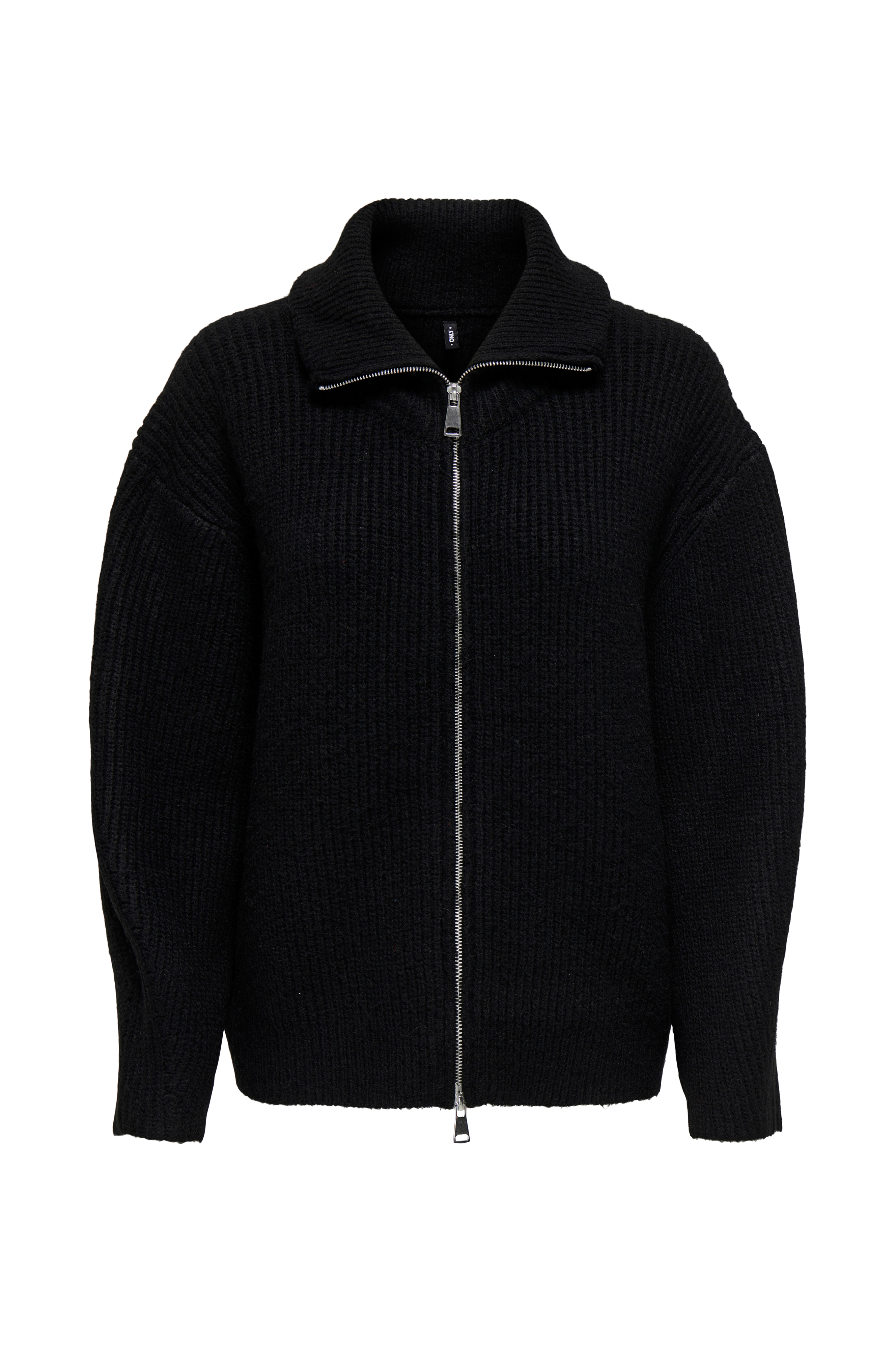 • Ribstrikket cardigan med høj krave• Tovejs lynlås ved fronten