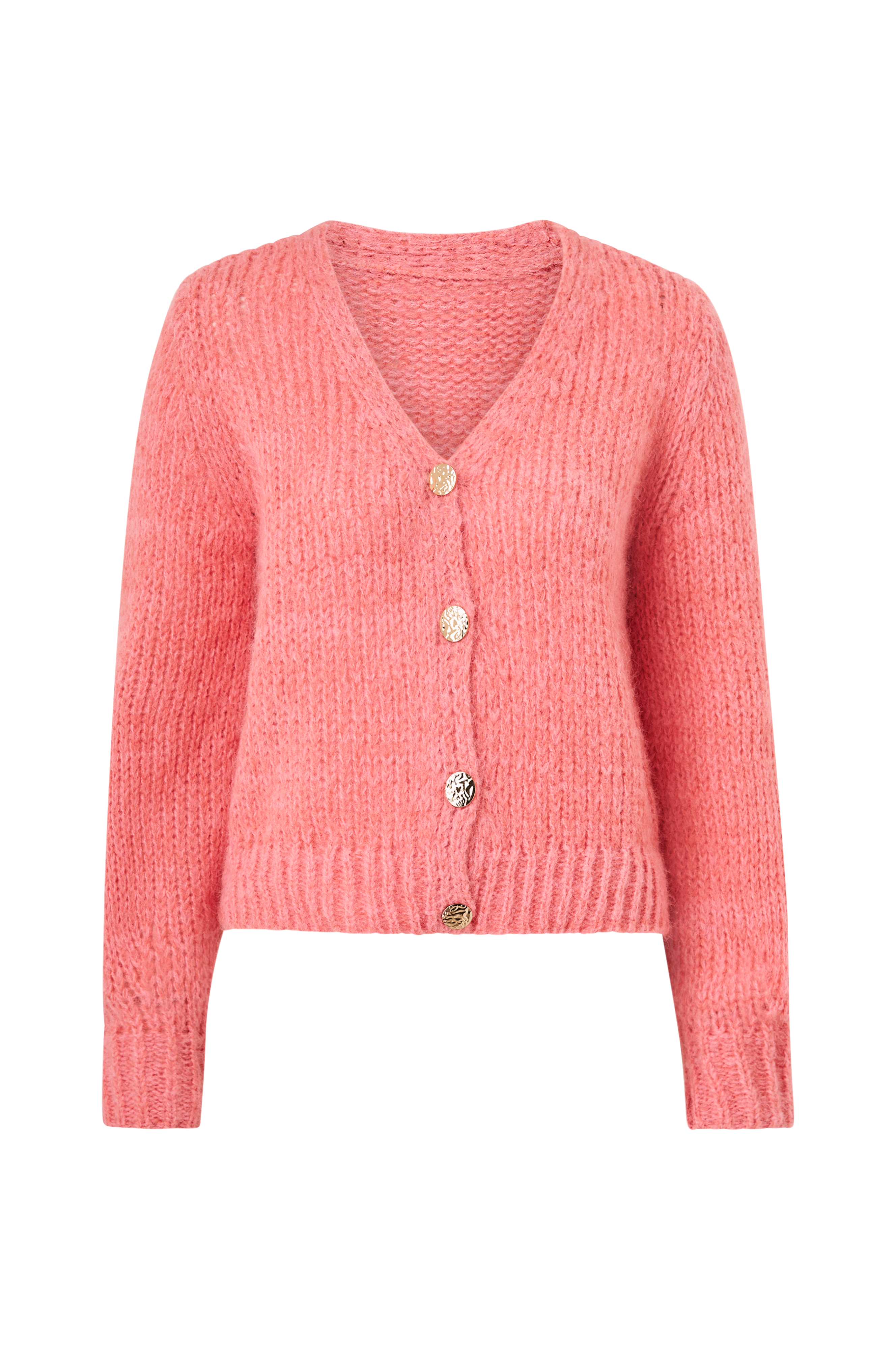 • Strikket, mønsterstrikket cardigan• V-udskæring• Guldfarvede knapper foran