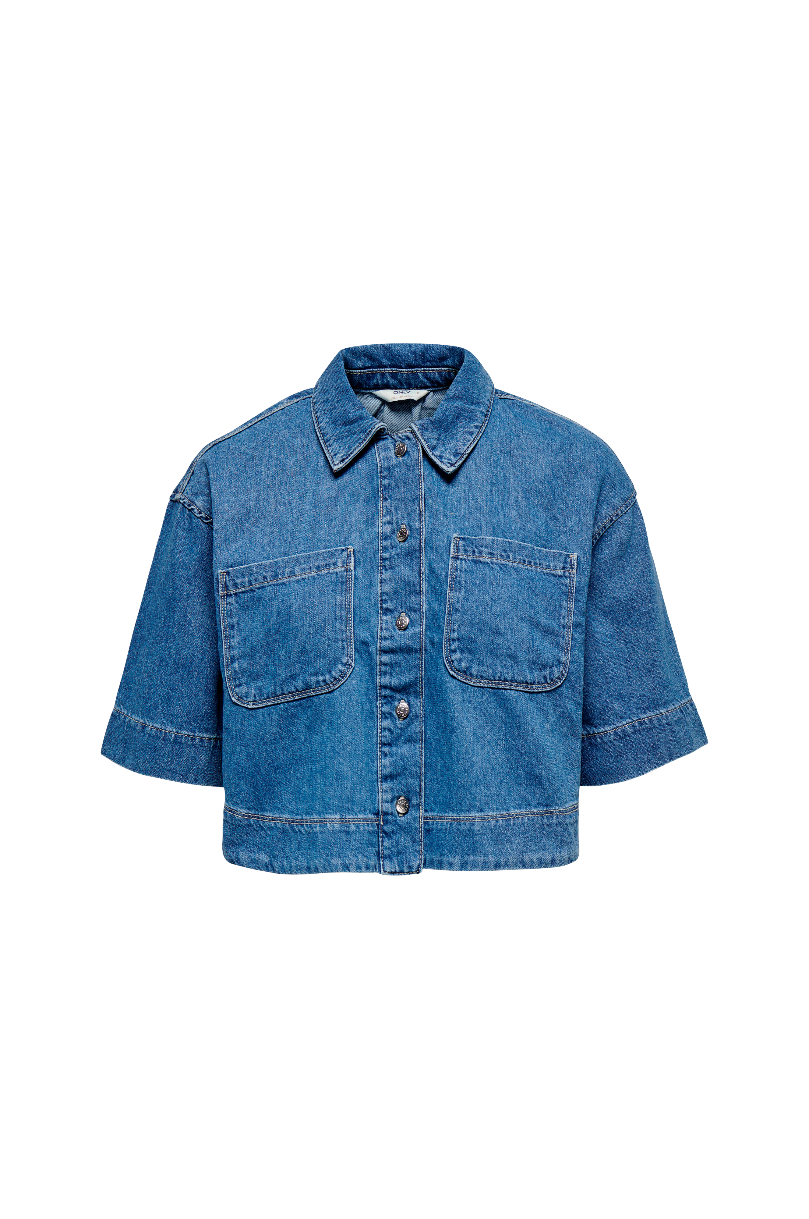• Croppet skjorte i denim• Korte ærmer• Knaplukning• Brystlommer• Afrundet søm med slidser i siderne