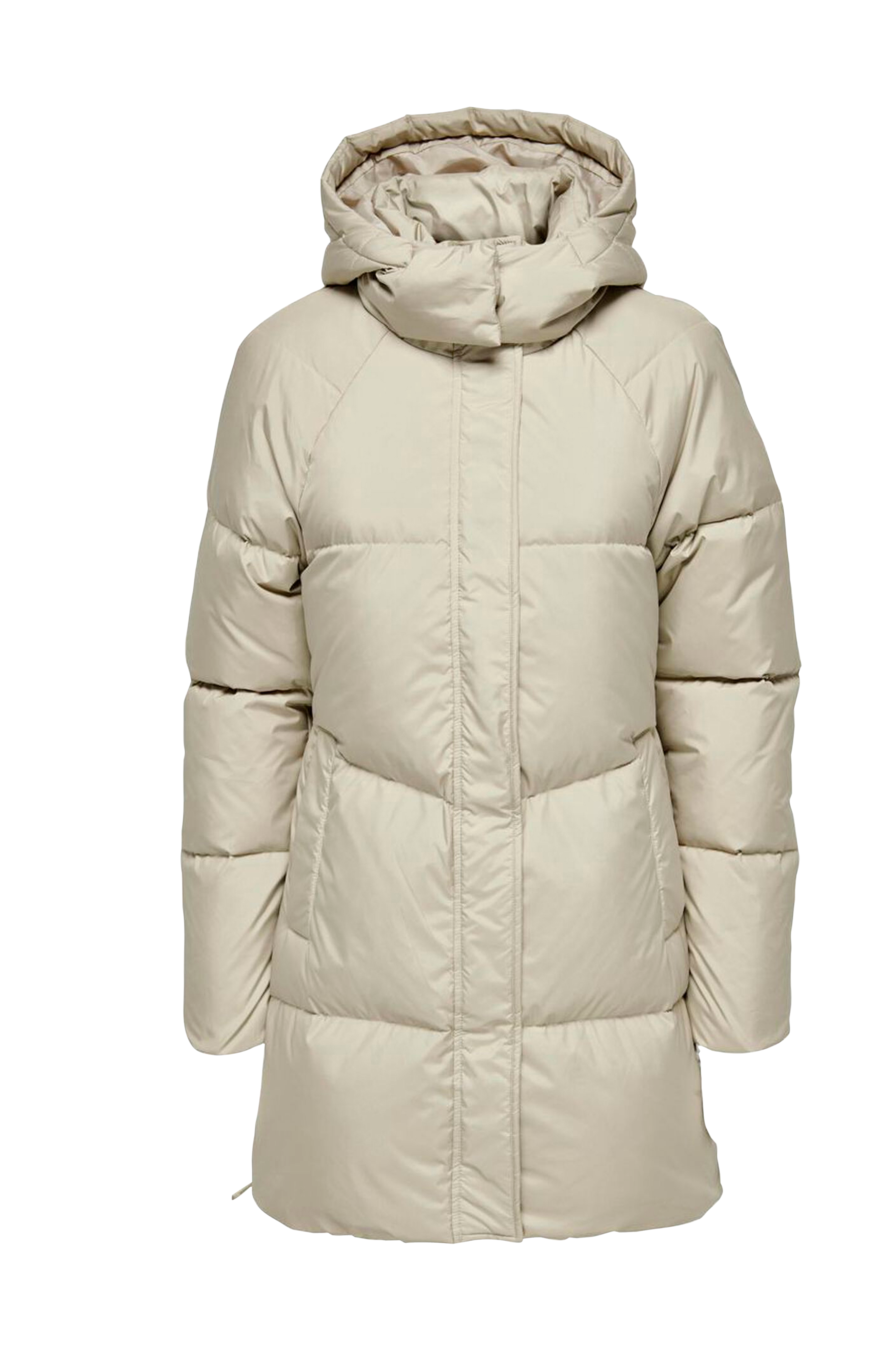 • Fast hætte • Høj krave • Lynlås • Vindflap med trykknapper • To lommer med trykknapslukning • Elastisk bånd ved manchetterne • Lynlåse nede i siderne • Længde: 91 cm i størrelse S • Dunene i dette produkt er produceret på ansvarlig vis på gårde, hvor der ikke forekommer tvangsfodring eller plukning fra levende dyr. Dyrene oplever ingen unødig stress og har adgang til foder og vand i hele deres levetid.