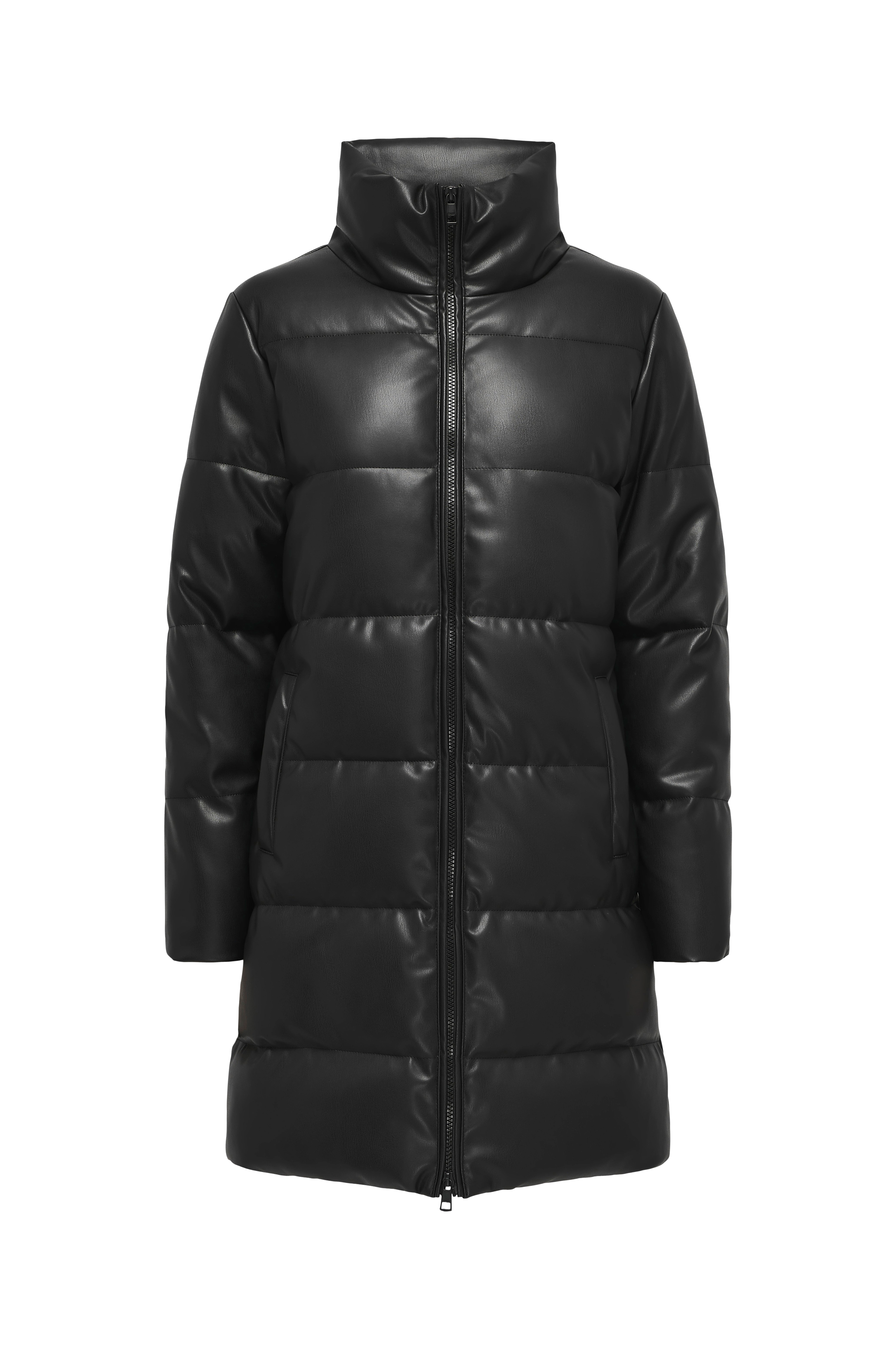 • Foret frakke i imiteret læder• Høj, foret krave• Lynlås• Sidelommer• Længde: 83 cm i størrelse S