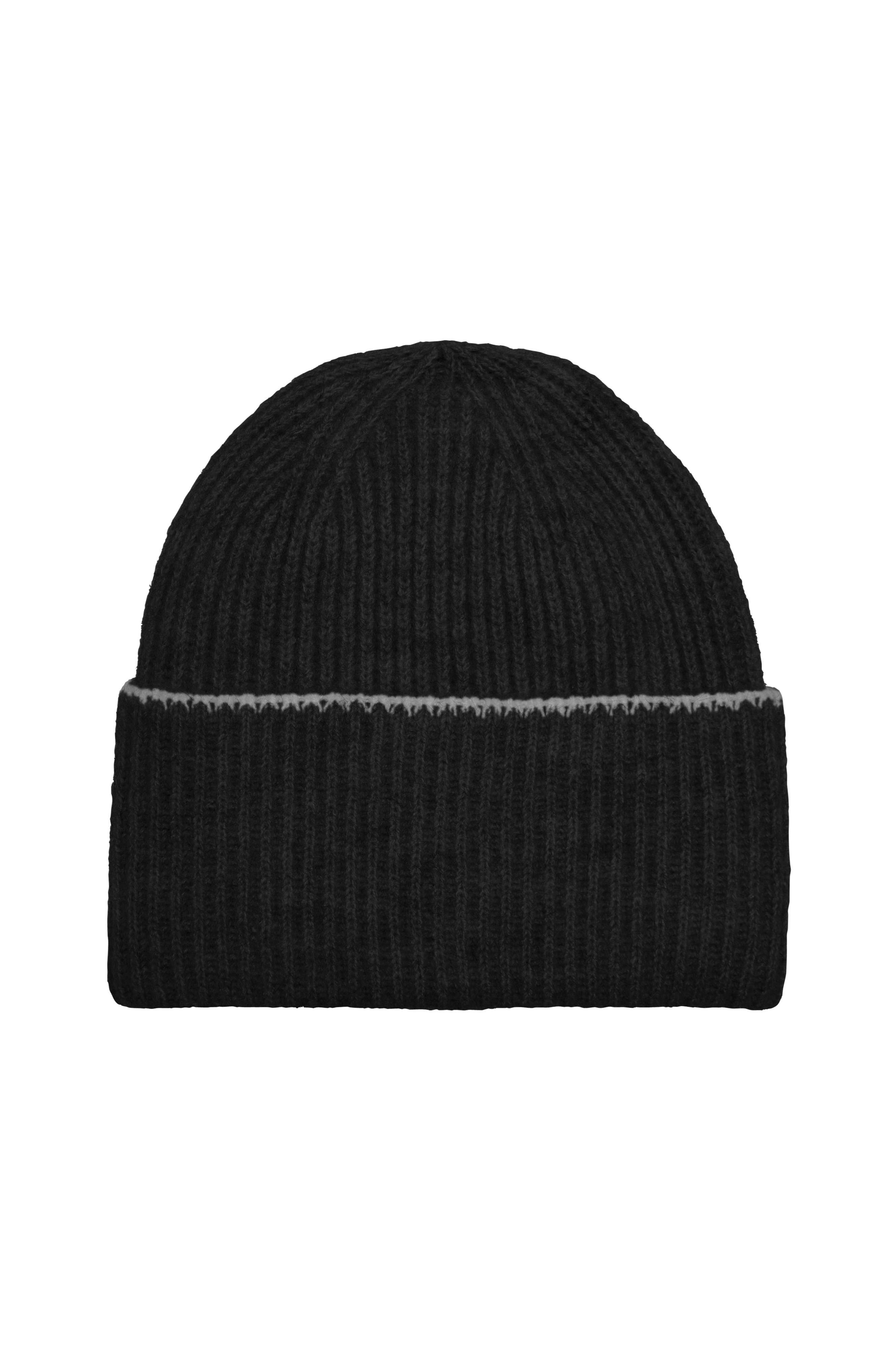 • Ribstrikket hue• Foldet søm med kontrastfarvede sømme