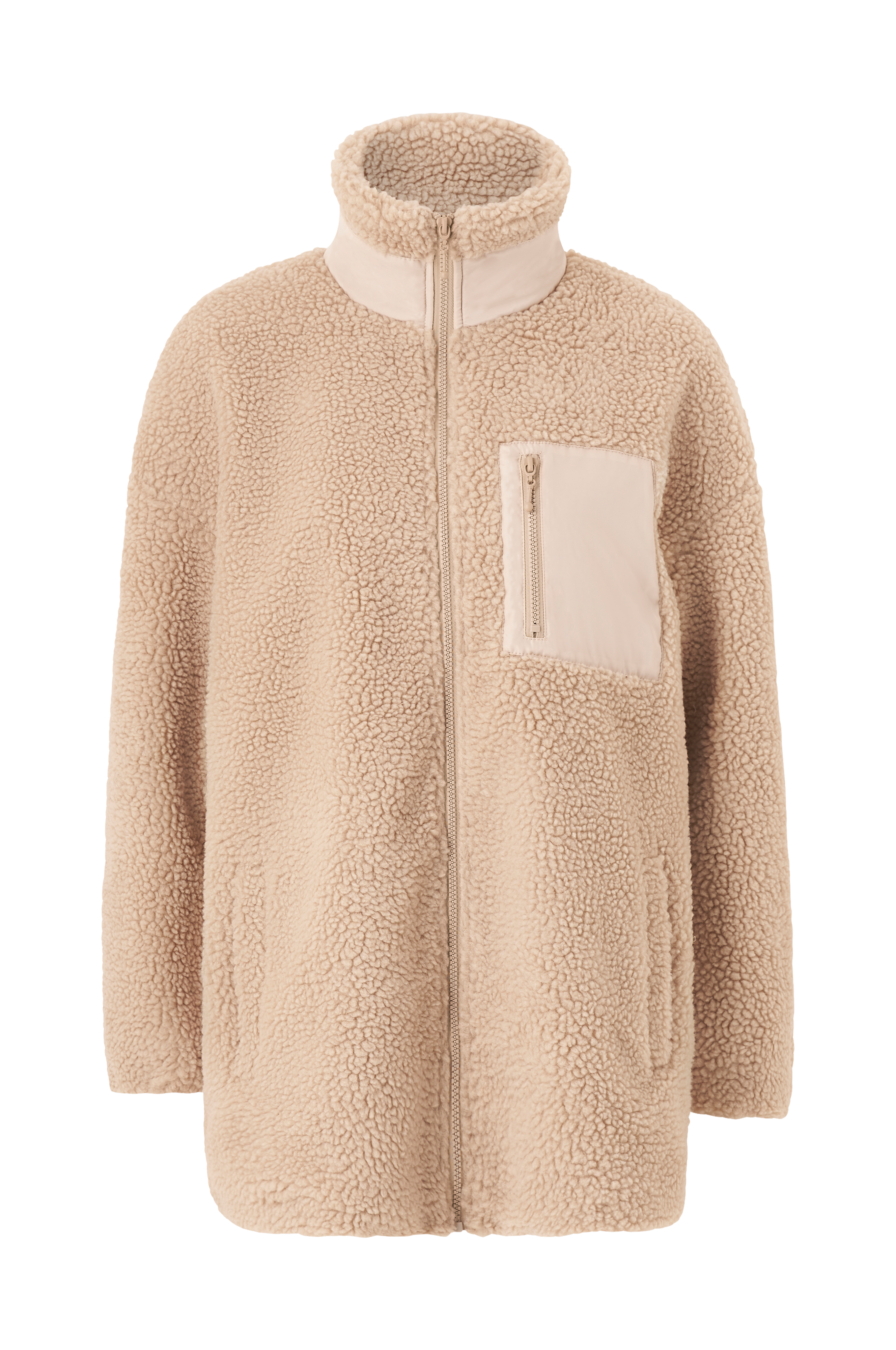 • Lang model i teddy• Lynlås foran med høj krave• Brystlomme med lynlås og to indlagte lommer• Indvendigt elastisk bånd ved manchetterne• Foret• Længde: 77 cm i størrelse S