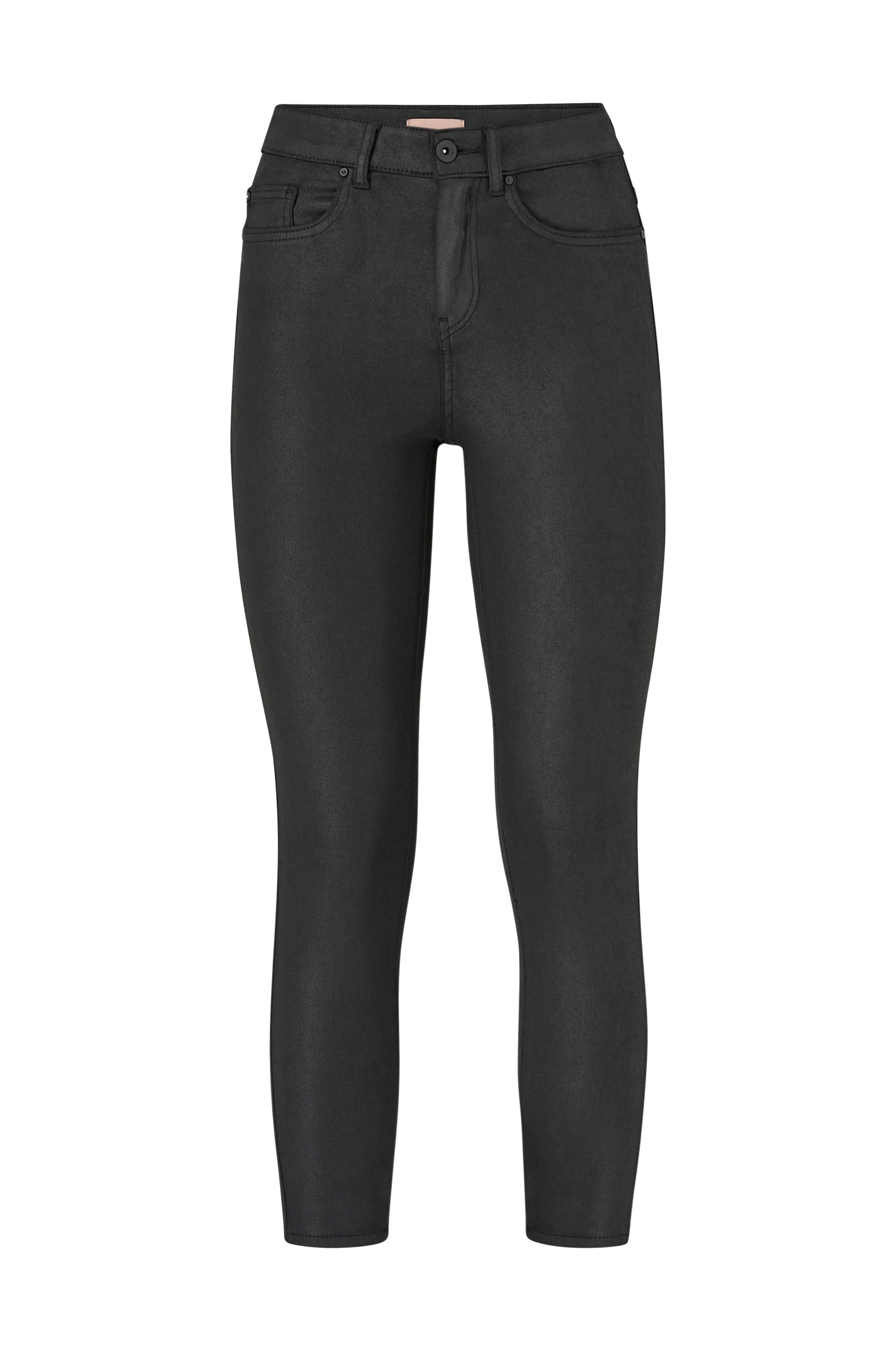 Jeans onlFhush Mid Ank Coat fra Only. Flot, ankellang model med let blank overflade. Fem klassiske jeanslommer og lynlås i gylpen.
