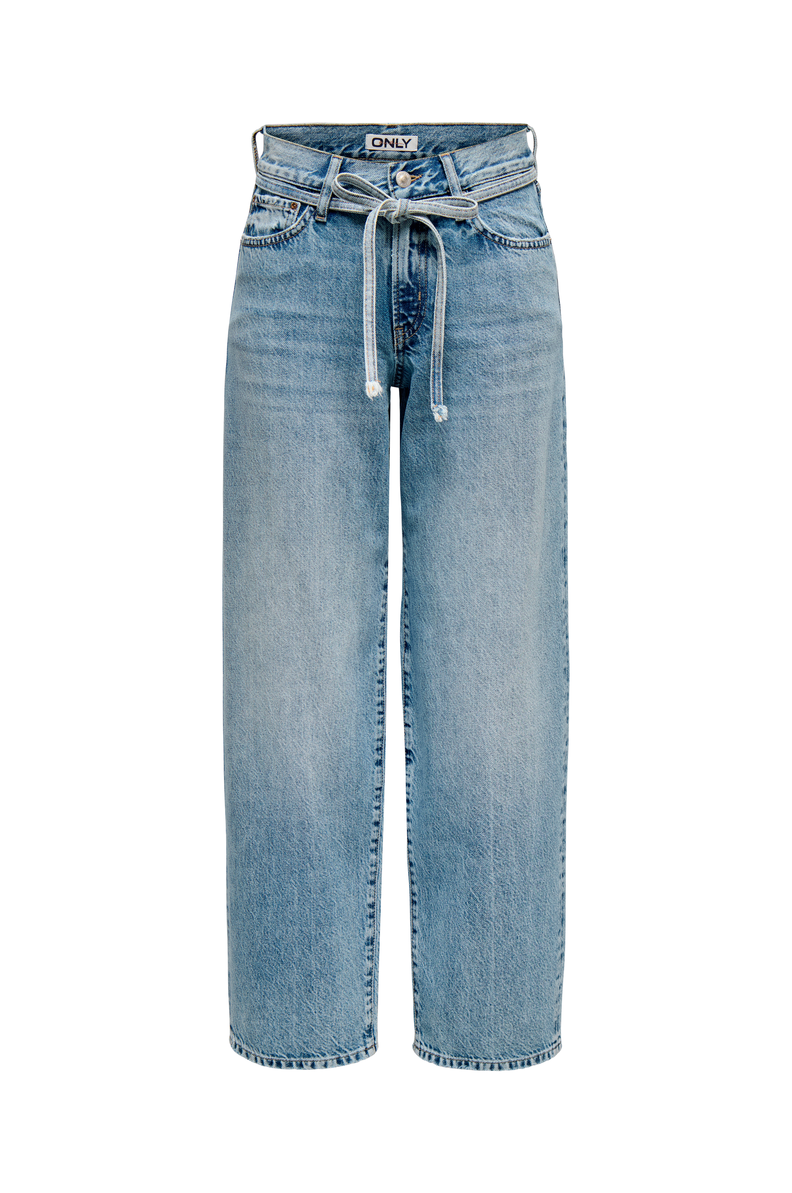• Jeans med høj talje• Femlommemodel• Bælteløkker med aftageligt bindebånd• Gylp med lynlås med knap på toppen• Lige, brede ben• Indre benlængde: 71 cm i størrelse 27/30