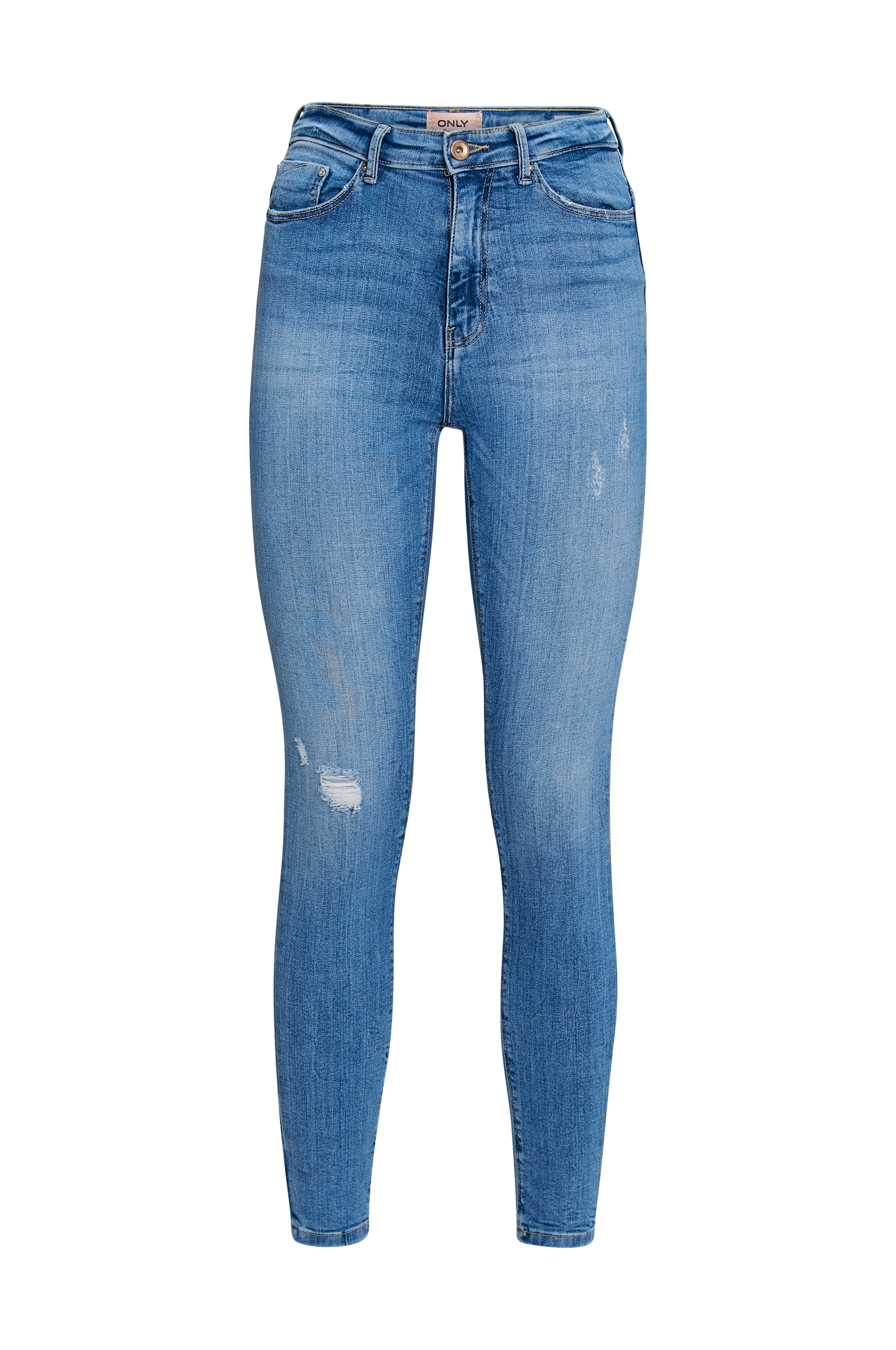 Jeans onlPaola High Waist Skinny fra Only i ankellang model med høj talje og smalle ben med diskrete slidte effekter foran. Jeansene har i alt fem lommer og lukkes med lynlåsgylp. Fremstillet af blød stretchdenim.