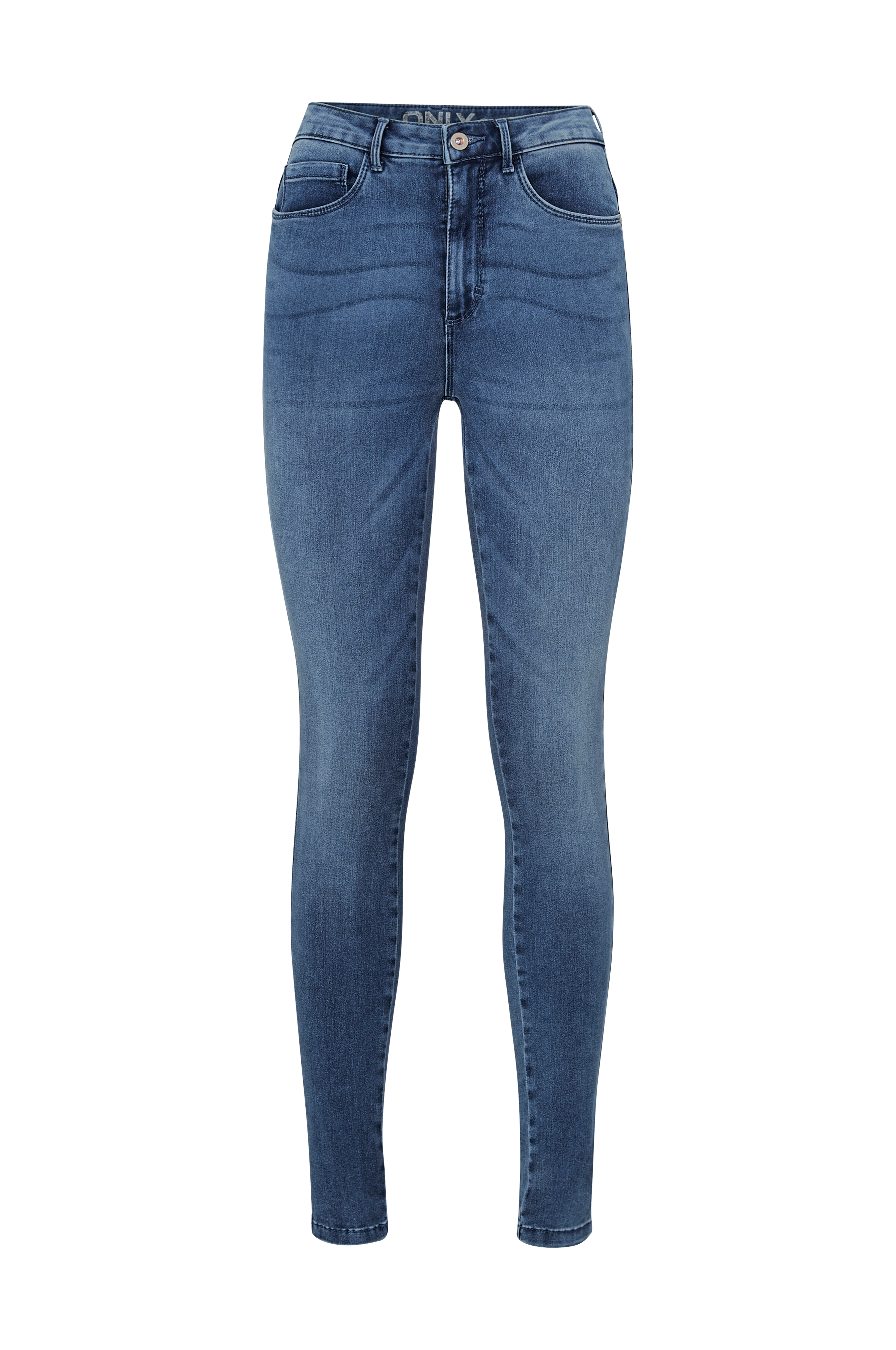 Jeans onlRoyal High Waist Skinny fra Only. Smal model i blød stretchdenim med høj talje og smal benkant. Tre forlommer, to baglommer og mørke pyntesyninger. Fodvidde ca. 24 cm.