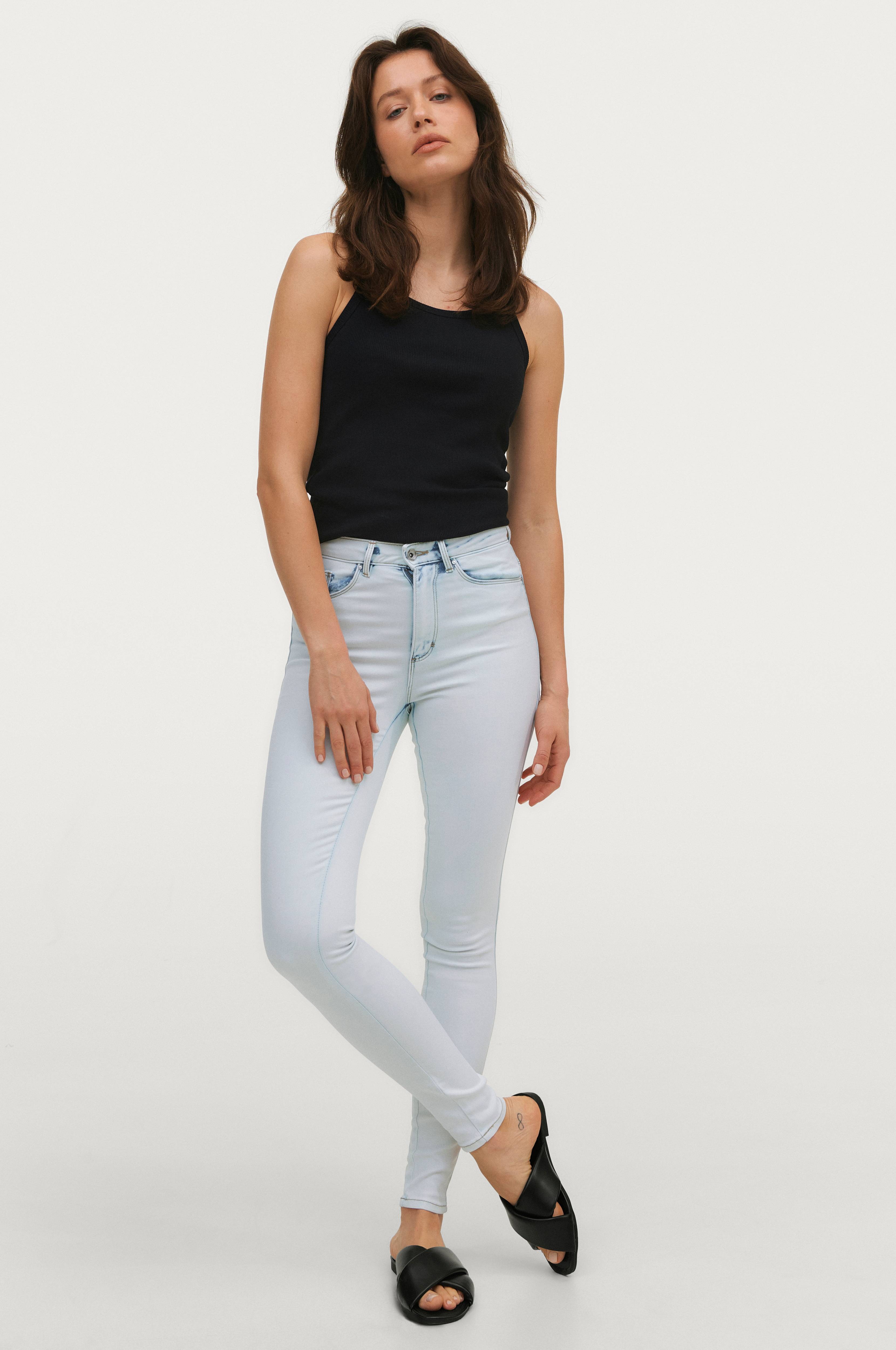 • Skinny fit • Høj talje • Femlommemodel • Gylp med lynlås • Strækdenim • Produktet indeholder økologisk bomuld, som er dyrket uden kemiske sprøjtemidler, kunstgødning og genmodificerede afgrøder (GMO). Dette betyder et sundere arbejdsmiljø for landmænd og bedre jord.