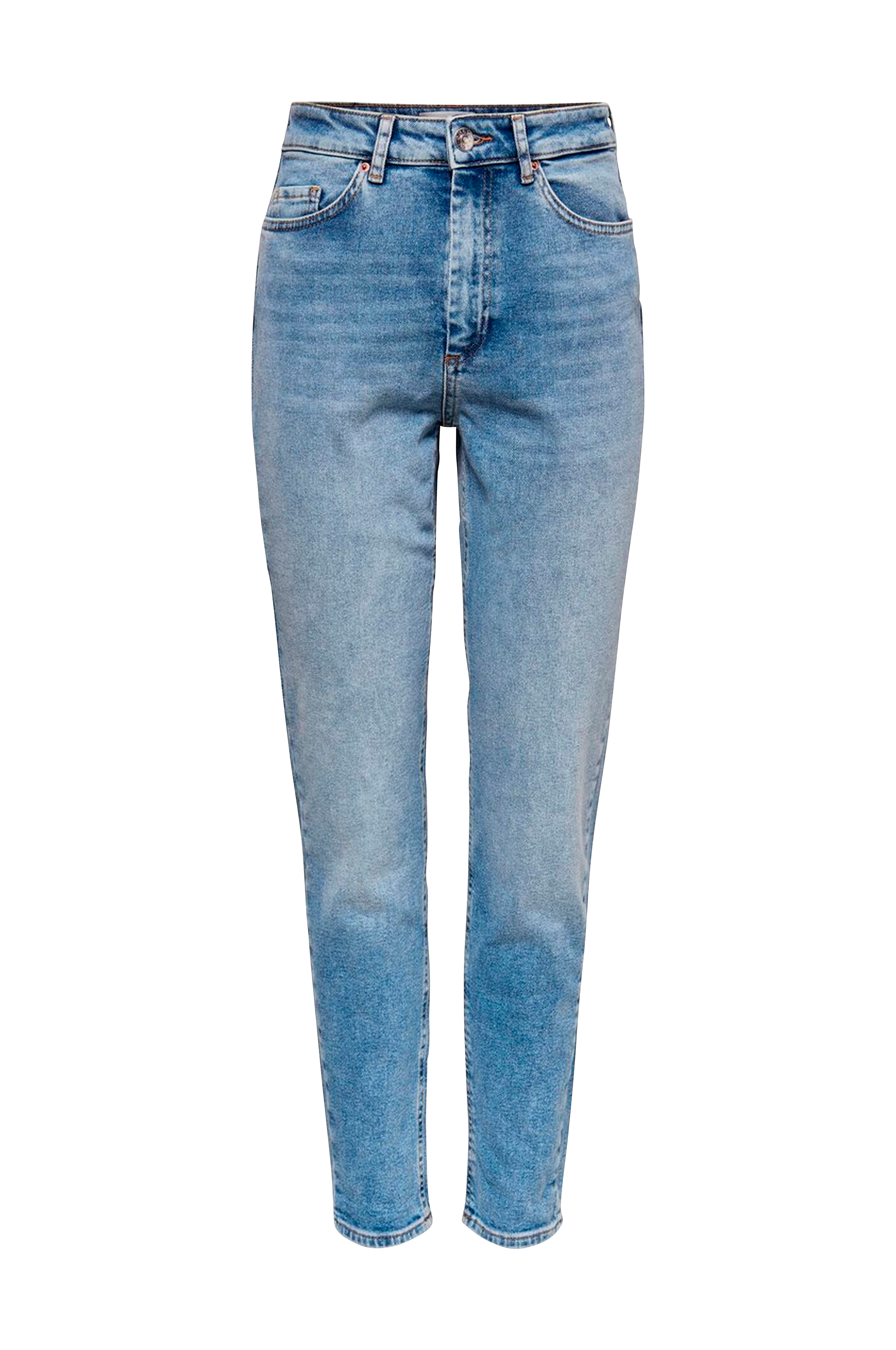 Jeans onlVeneda Life Mom Fit fra Only. Model med høj talje som har lynlås i gylpen og vidde i lårene med bukseben, der bliver lidt smallere nedefter. Stretchdenim af bomuld.