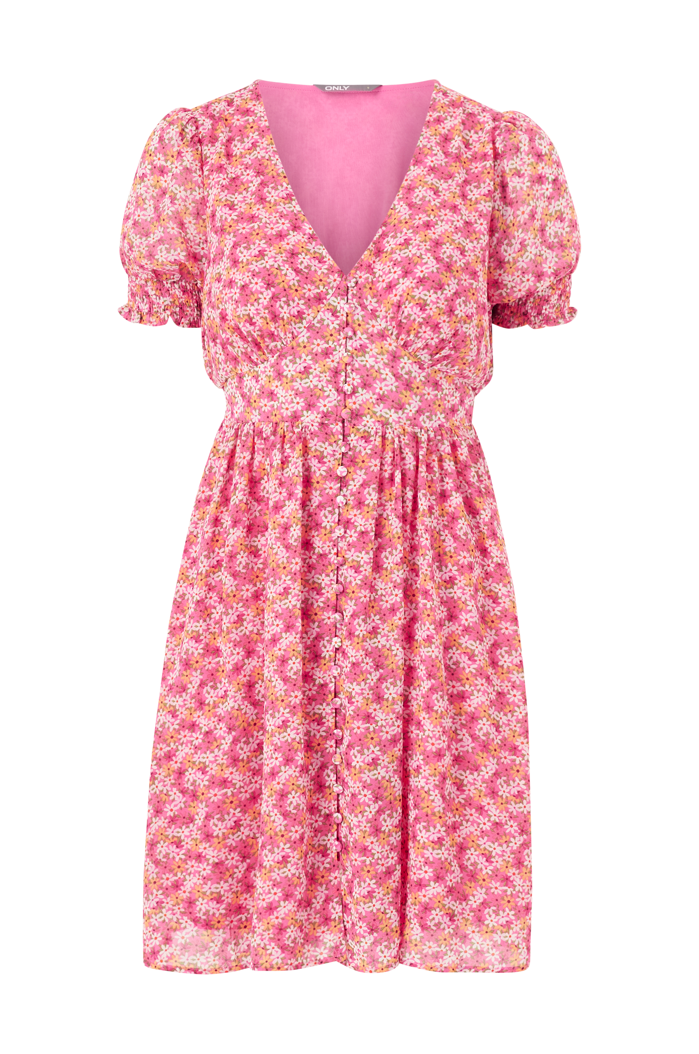 • V-udskæring• Knapper foran• Korte pufærmer med smock ved manchetterne• Foret• Længde: 90 cm i størrelse S