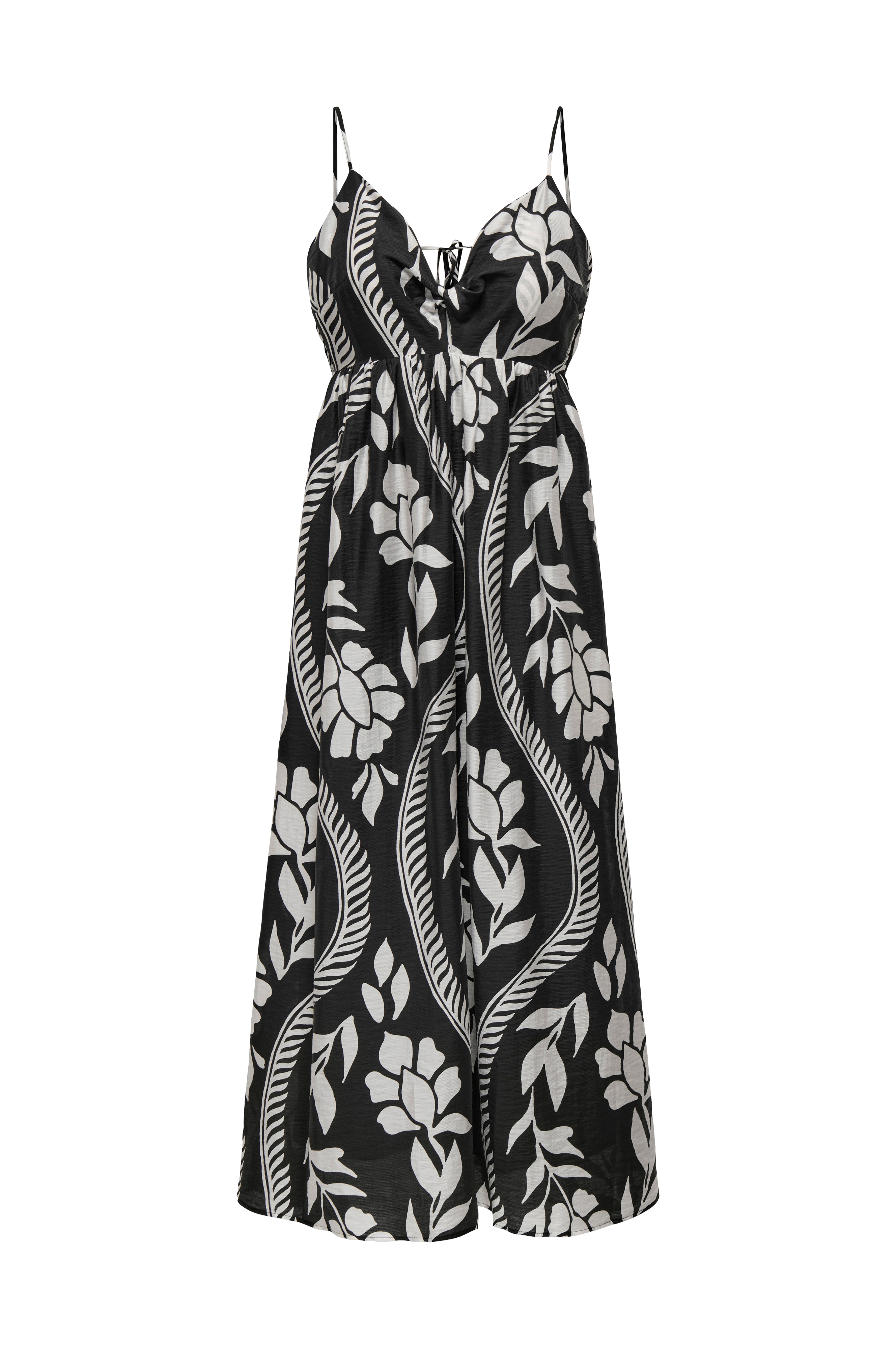 • Ærmeløs, v-formet model• Snoet detalje foran med kort slids• Tynde, justérbare skulderstropper• Åbning i ryggen med knudedetalje• Luftig tekstilforing• Elastik oppe bagved• Bølgeformede detaljer foran og bagpå• Længde: 124 cm i størrelse S