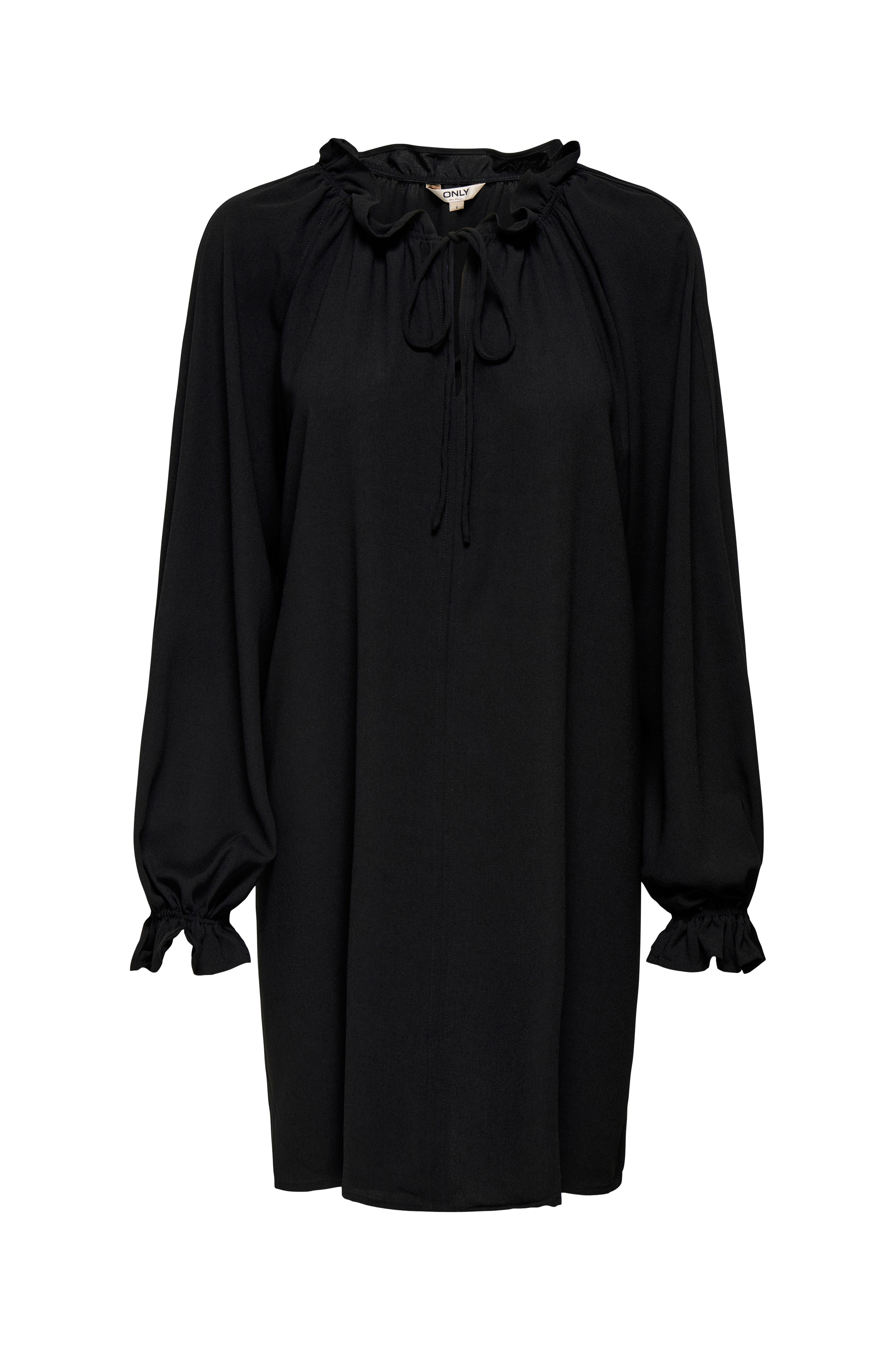 • Kort kjole med afslappet pasform• V-formet halsudskæring med volant og bindebånd på toppen• Lange ballonærmer med elastik og volant ved manchetterne• Længde: 85 cm i størrelse S