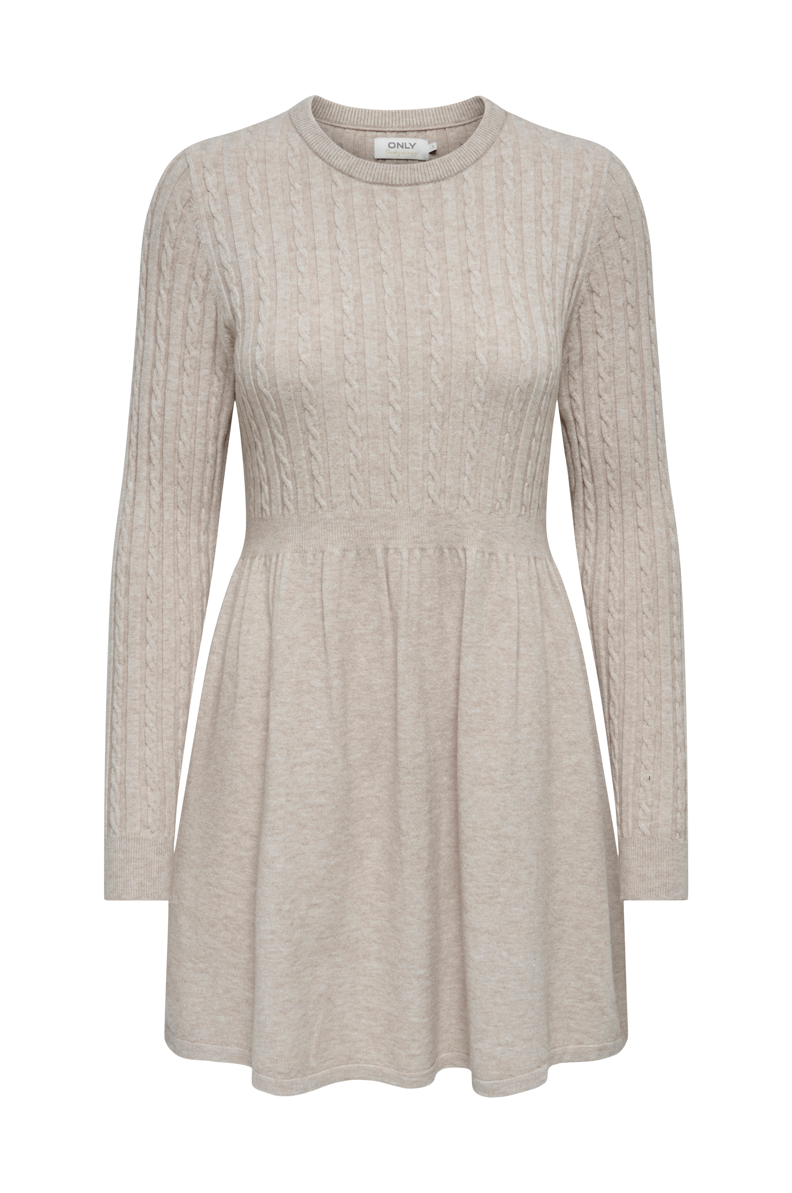 • Figurformede model med mønsterstrikning på toppen• Rund hals med ribstrik• Defineret, ribstrikket talje• Længde: 91 cm i størrelse S
