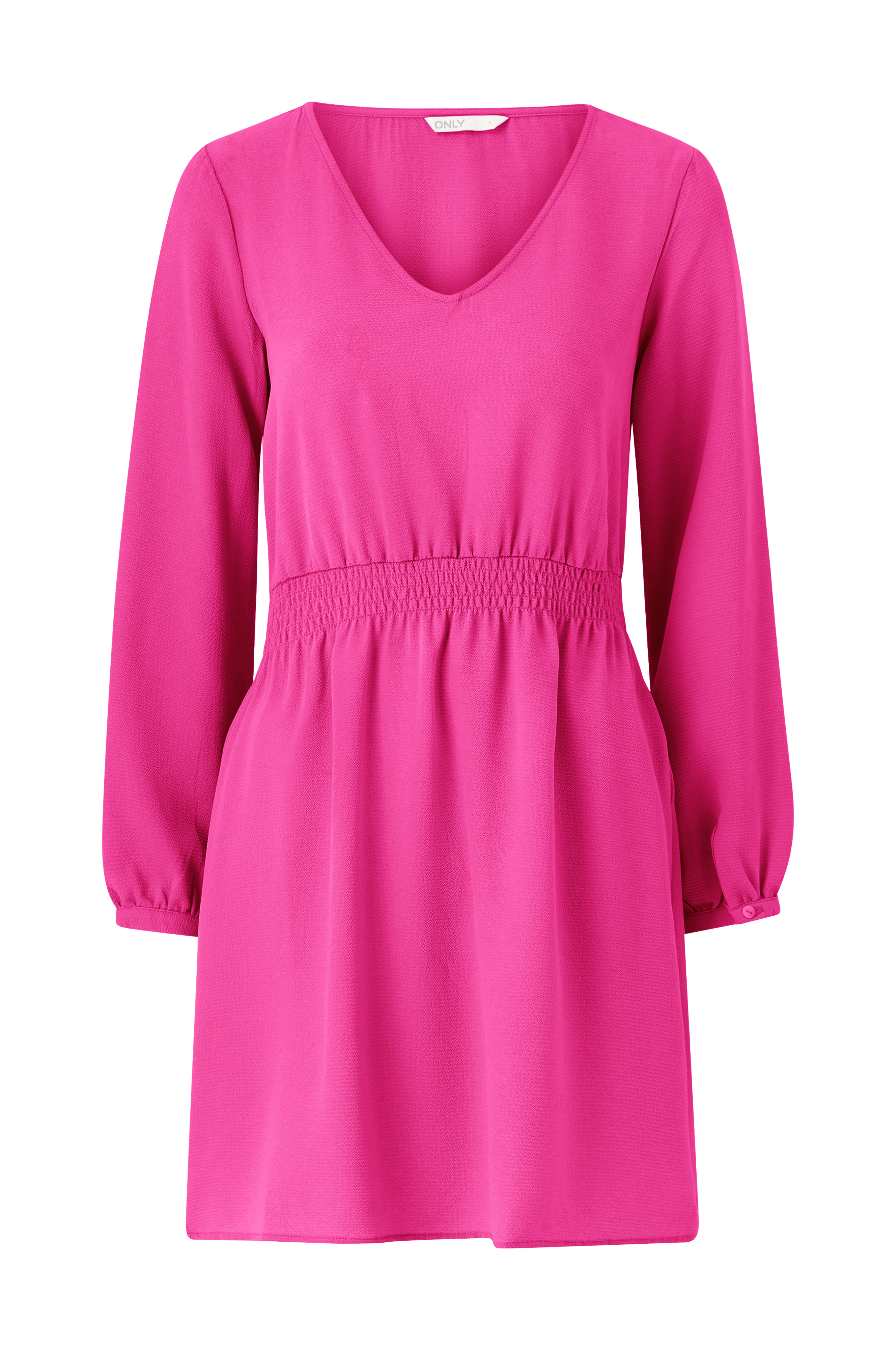 • V-udskæring• Smock ved taljen• Lange ærmer med tynd manchet• Kreppet kvalitet• Længde: 87 cm i størrelse S