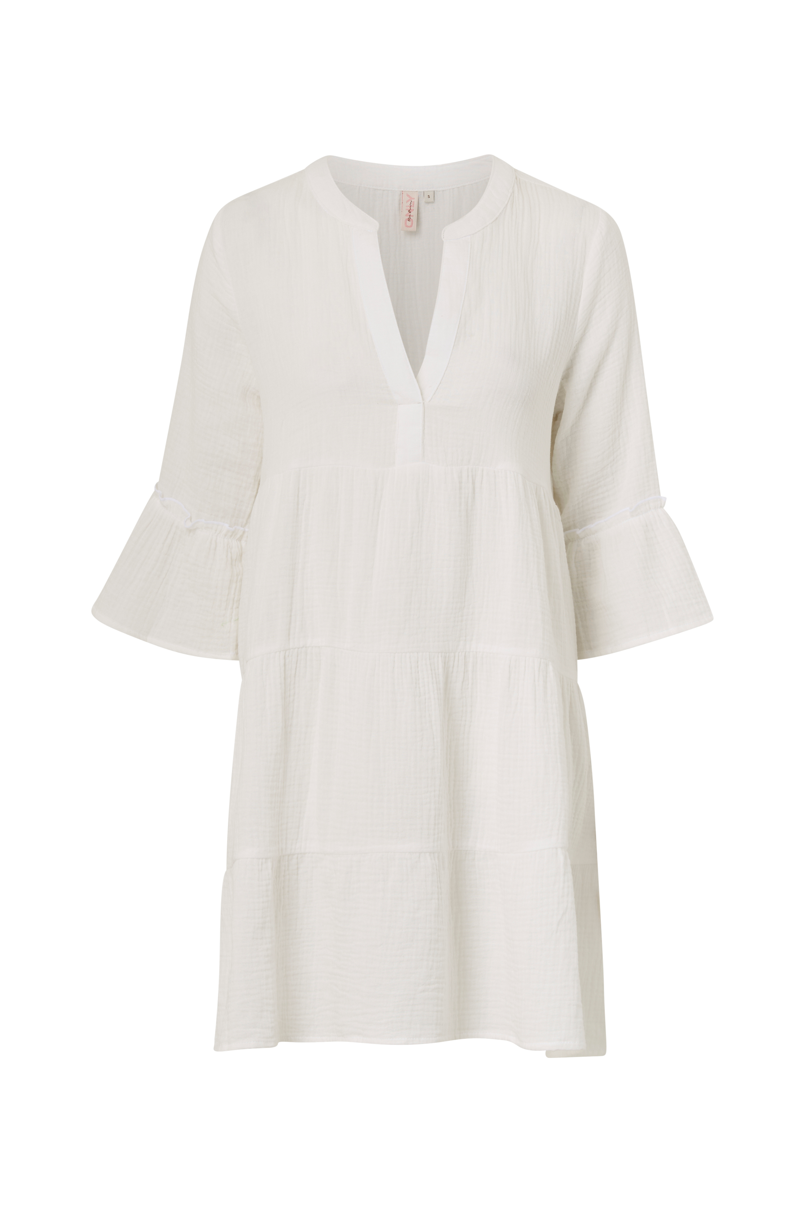 • Model med svaj• Løs pasform• V-udskæring• 3/4 lange ærmer med volant ved manchetterne• Fremstillet af blødt bomuldsvæv• Længde: 90 cm i størrelse S