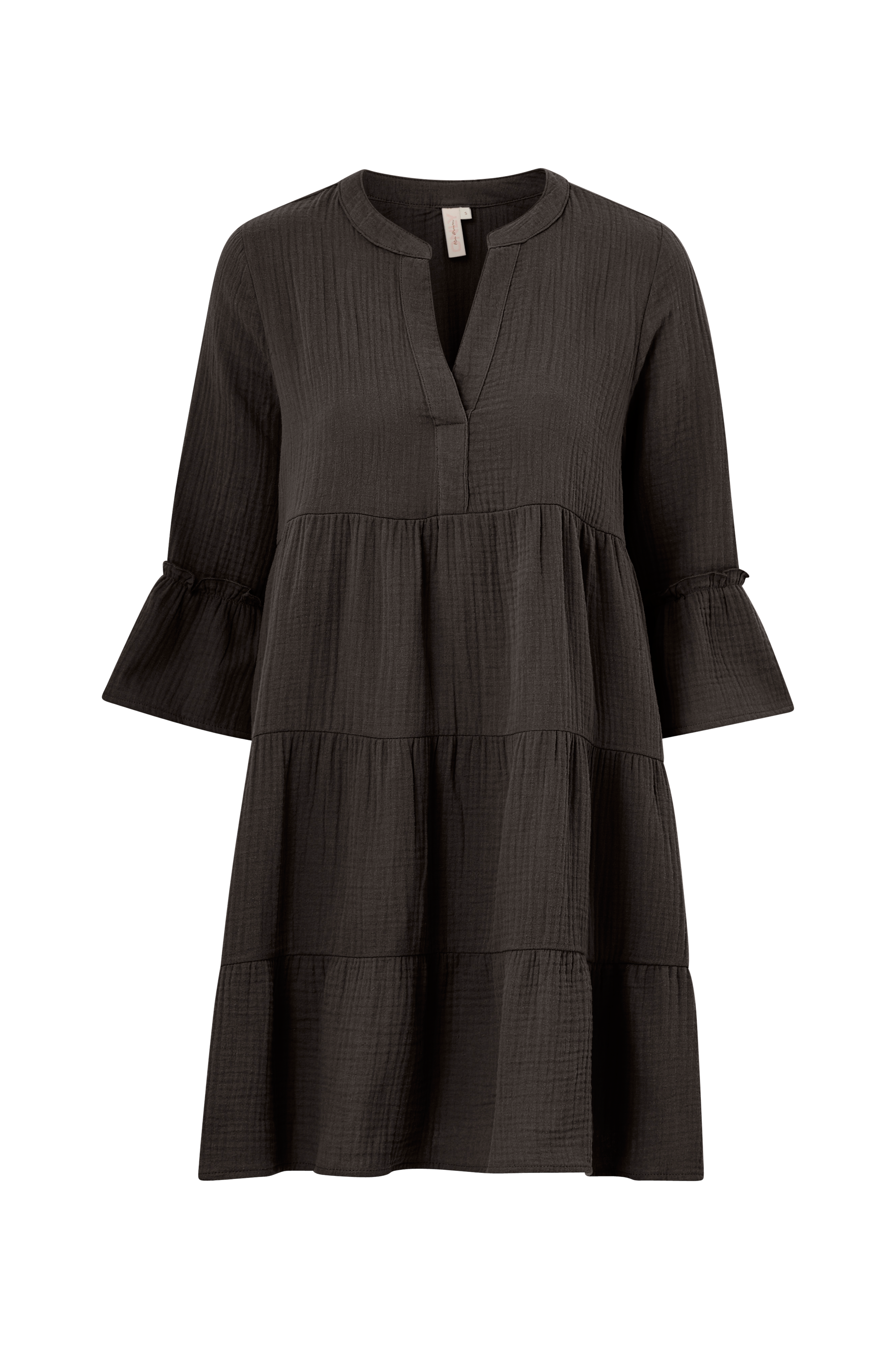• Model med svaj• Løs pasform• V-udskæring• 3/4 lange ærmer med volant ved manchetterne• Fremstillet af blødt bomuldsvæv• Længde: 90 cm i størrelse S