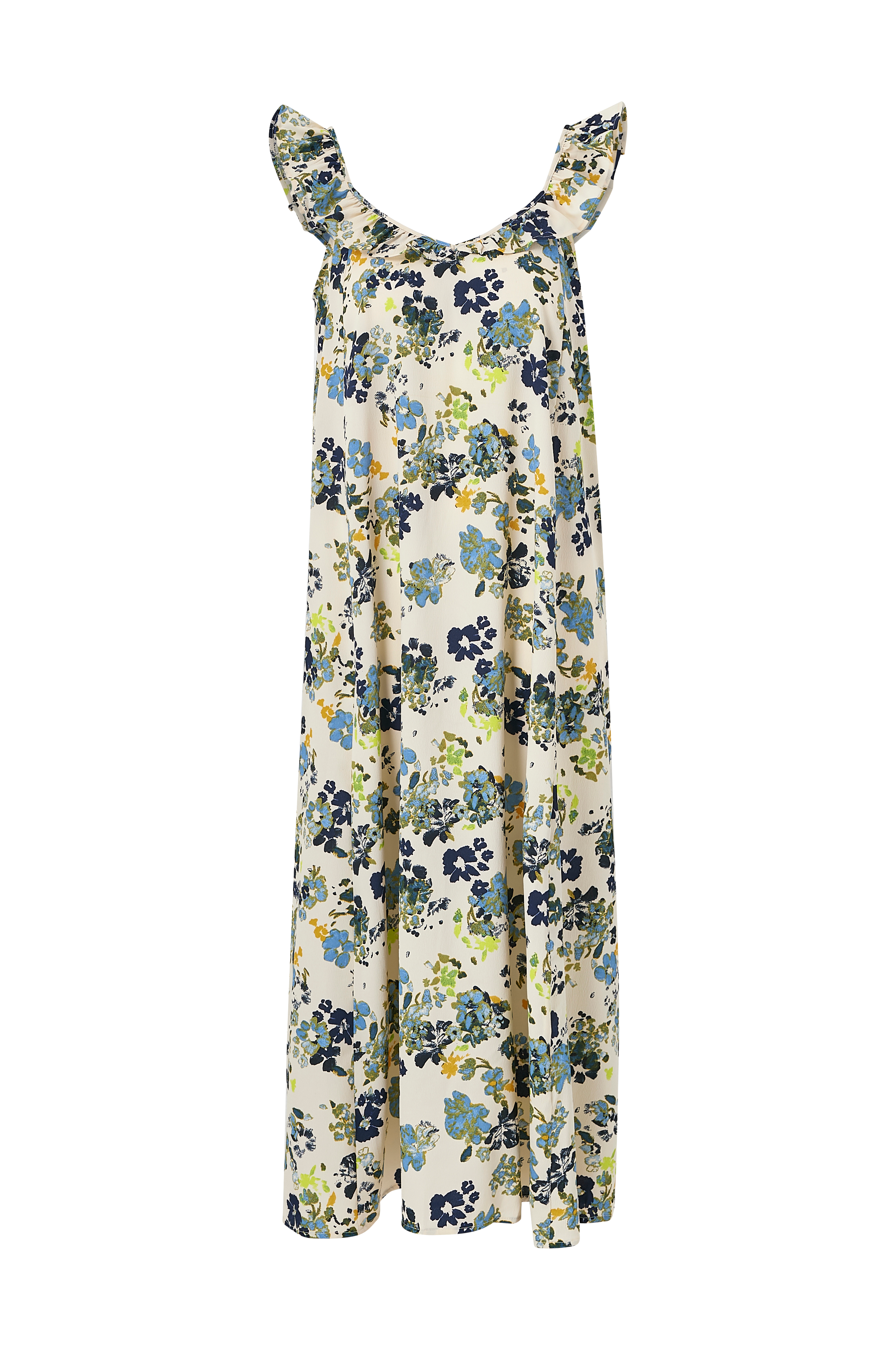 • Ærmeløs model med volanter på skuldrene • A-linje design • Læglængde • Længde: 128 cm i størrelse S • Produktet indeholder genindvundet materiale, som genbruges for at reducere mængden af affald samtidigt med at der ikke anvendes nye ressourcer.