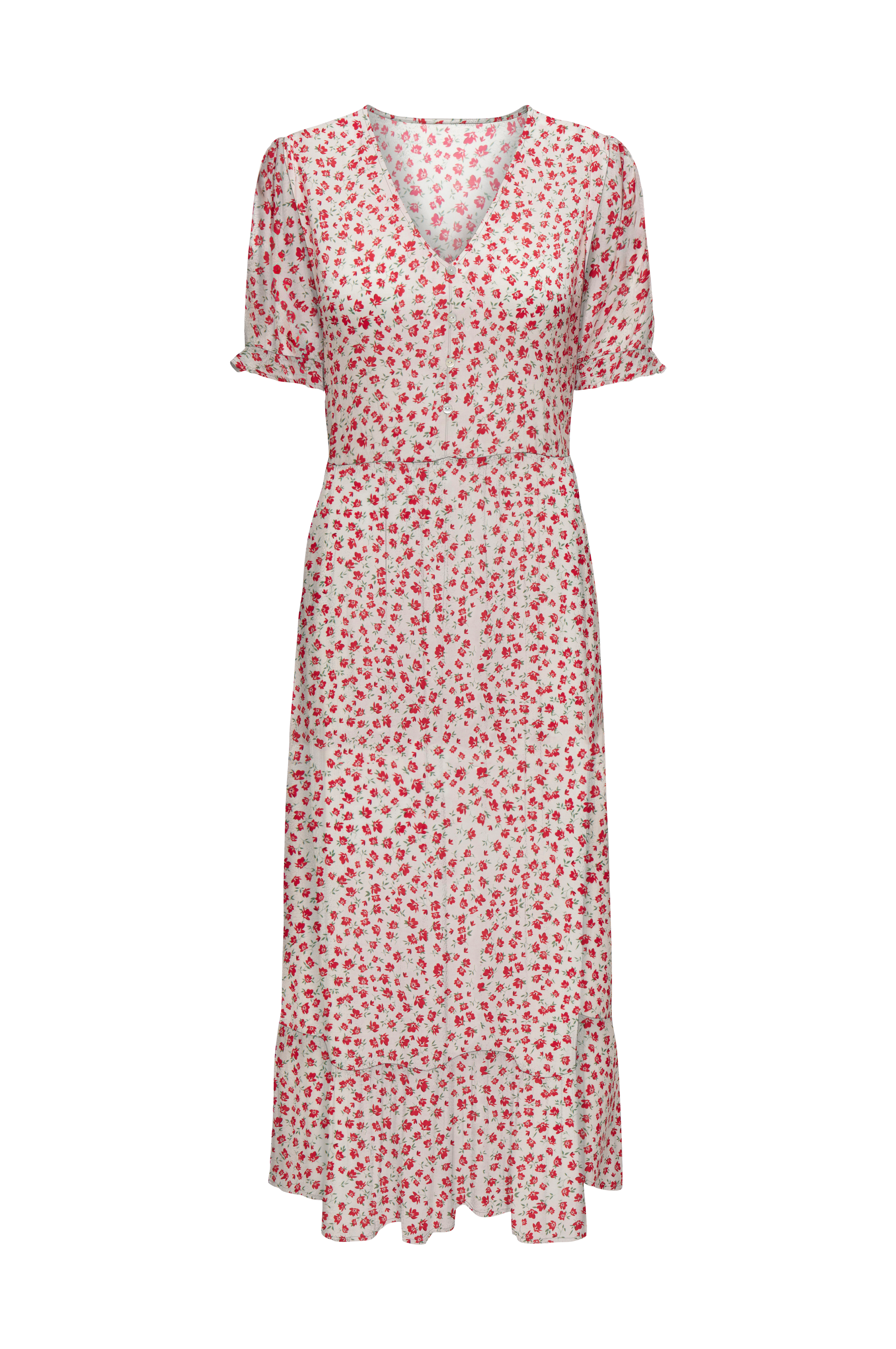 • V-udskæring• Dekorative knapper oppe foran• Korte ærmer med volant• Elastisk talje• Volant nederst• Længde: 130 cm i størrelse S
