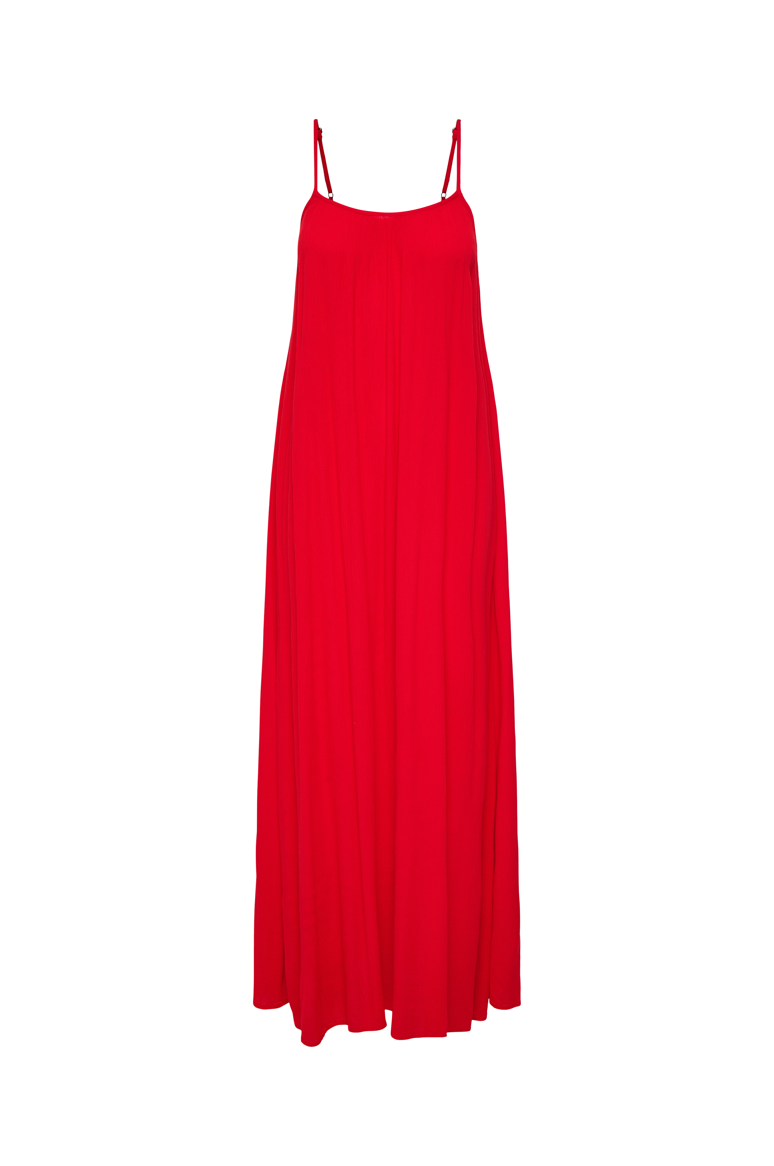 • Lang, ærmeløs kjole i viskose• Let krøllet struktur• Model med svaj• Rund halsudskæring• Justérbare skulderstropper• Afslappet pasform• Længde: 137 cm i størrelse S