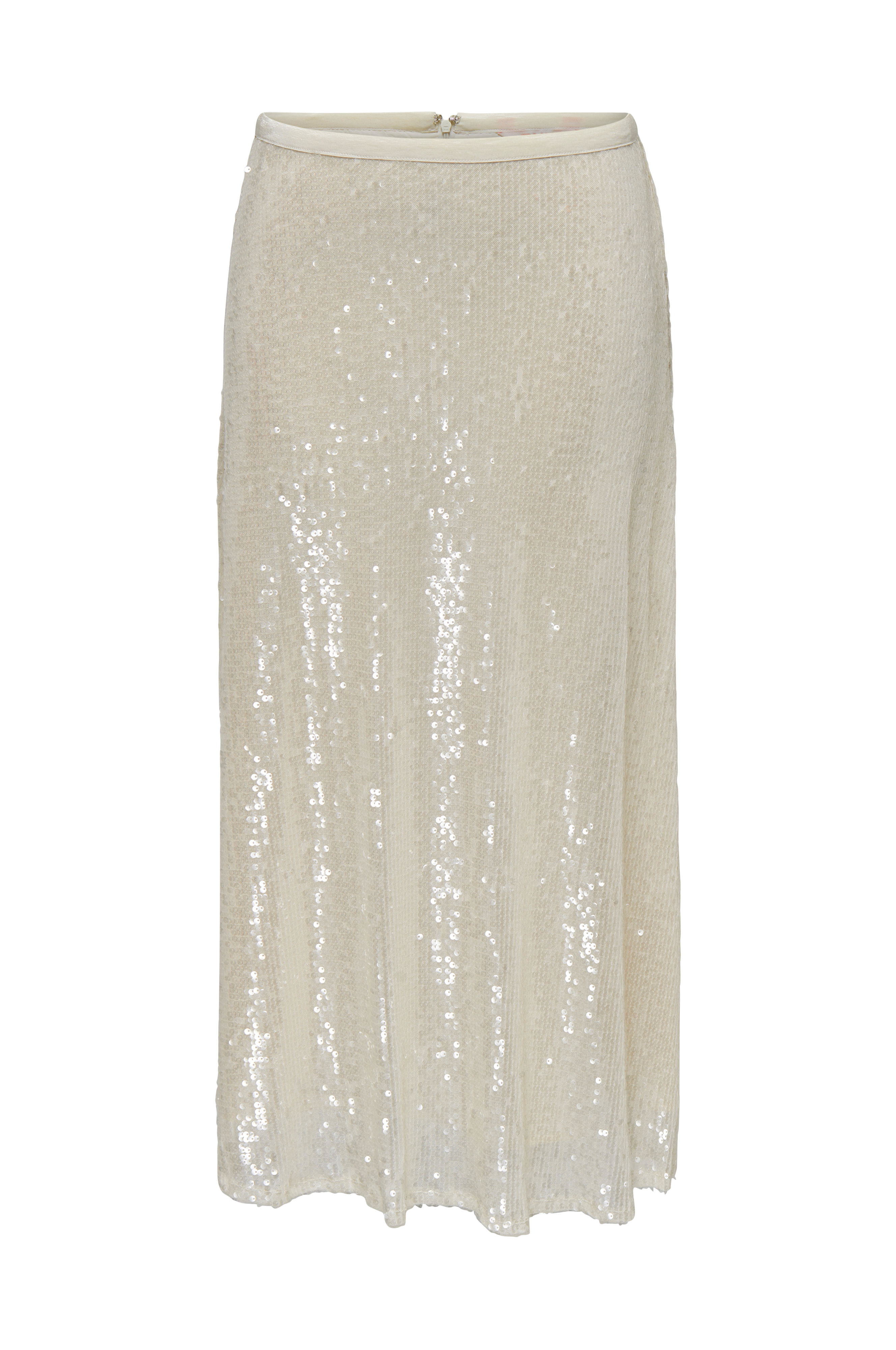 • Lang model med svaj med broderede pailletter overalt• Elastisk kant på toppen med lynlås bagpå• Foret• Længde: 84 cm i størrelse S