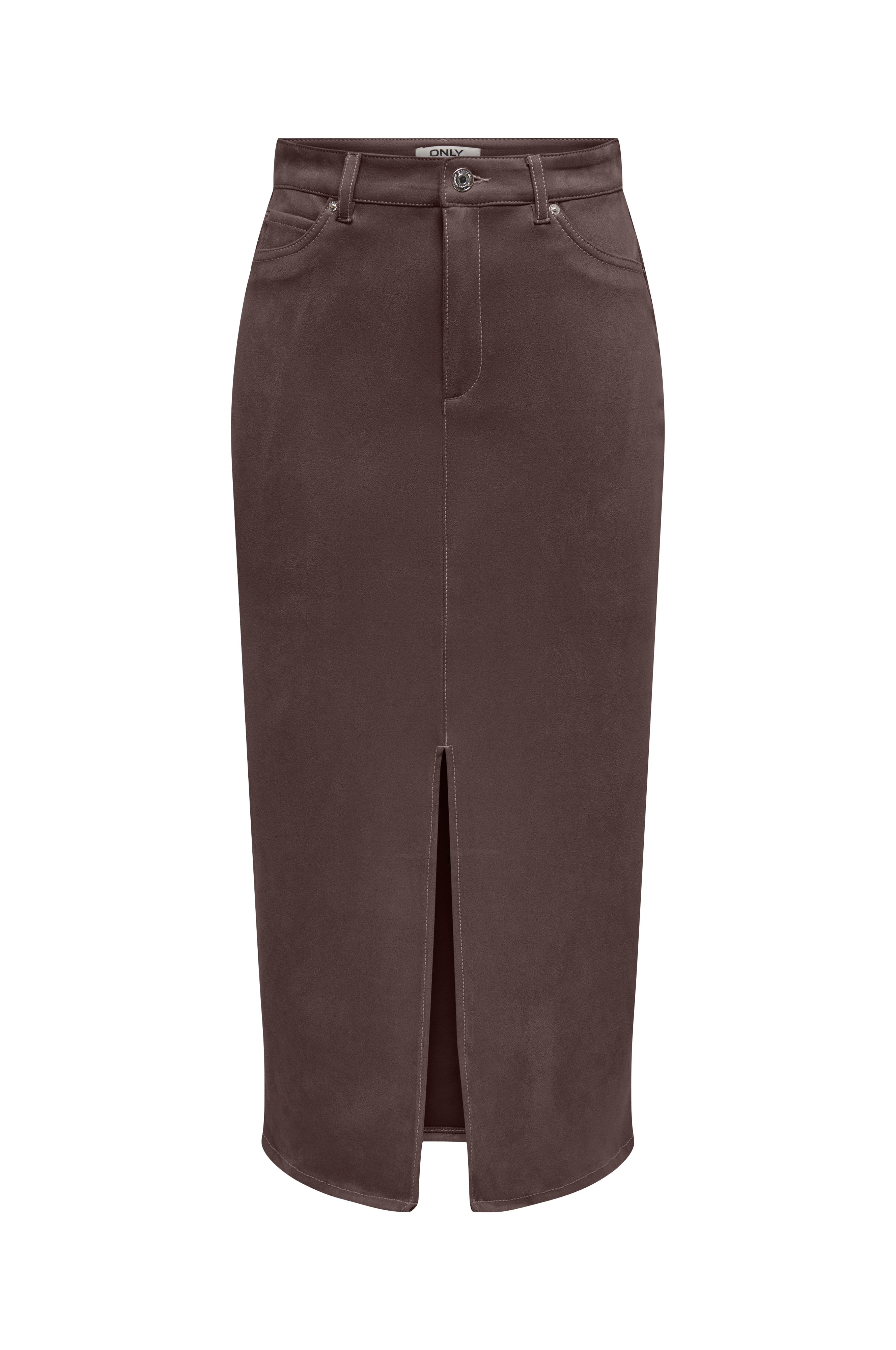 • Nederdel i ruskindsimitation• Mediumhøj talje• Bælteløkker• Lynlås- og knaplukning• Slids nede foran• Smal pasform• Længde: 82 cm i størrelse S