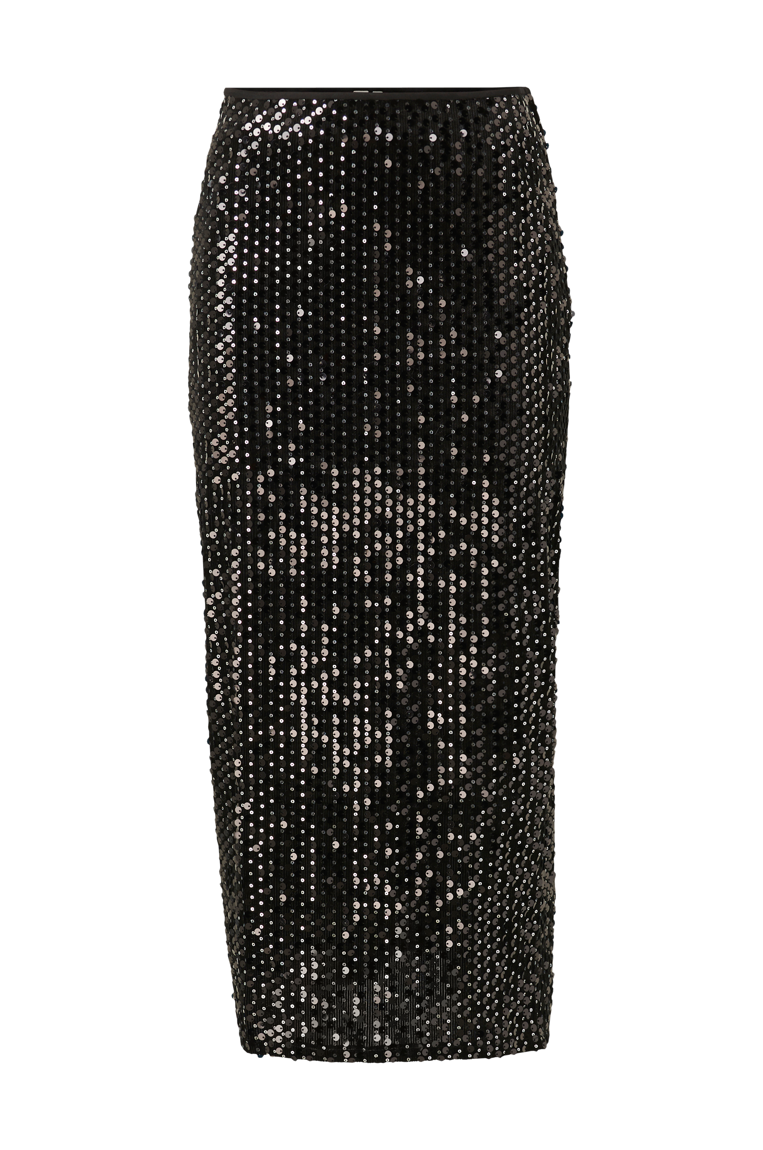 • Nederdel i fløjl med pailleter• Lige, smal pasform• Elastisk talje• Kort slids i den ene side• Længde: 84 cm i størrelse S