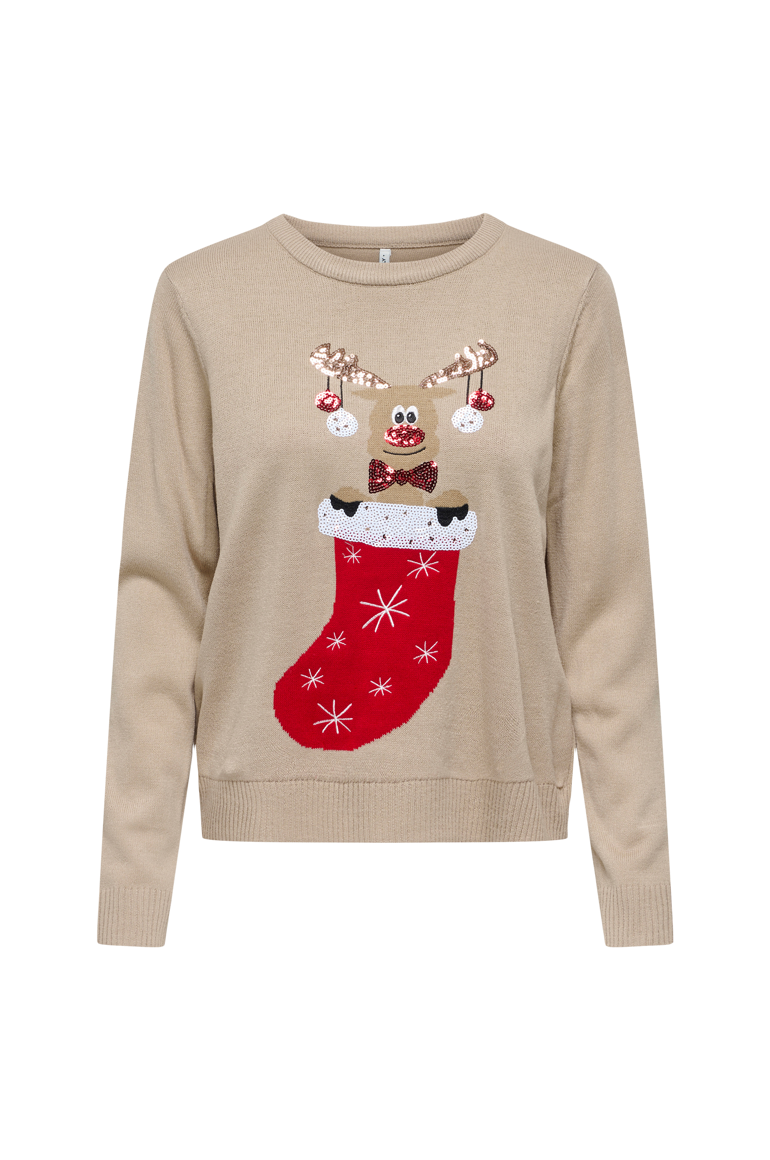 • Langærmet, fintstrikket Pullover• Rund, ribbet halsudskæring• Julemotiv med pailleter foran• Ribmanchetter ved manchetterne og ved nederste kant