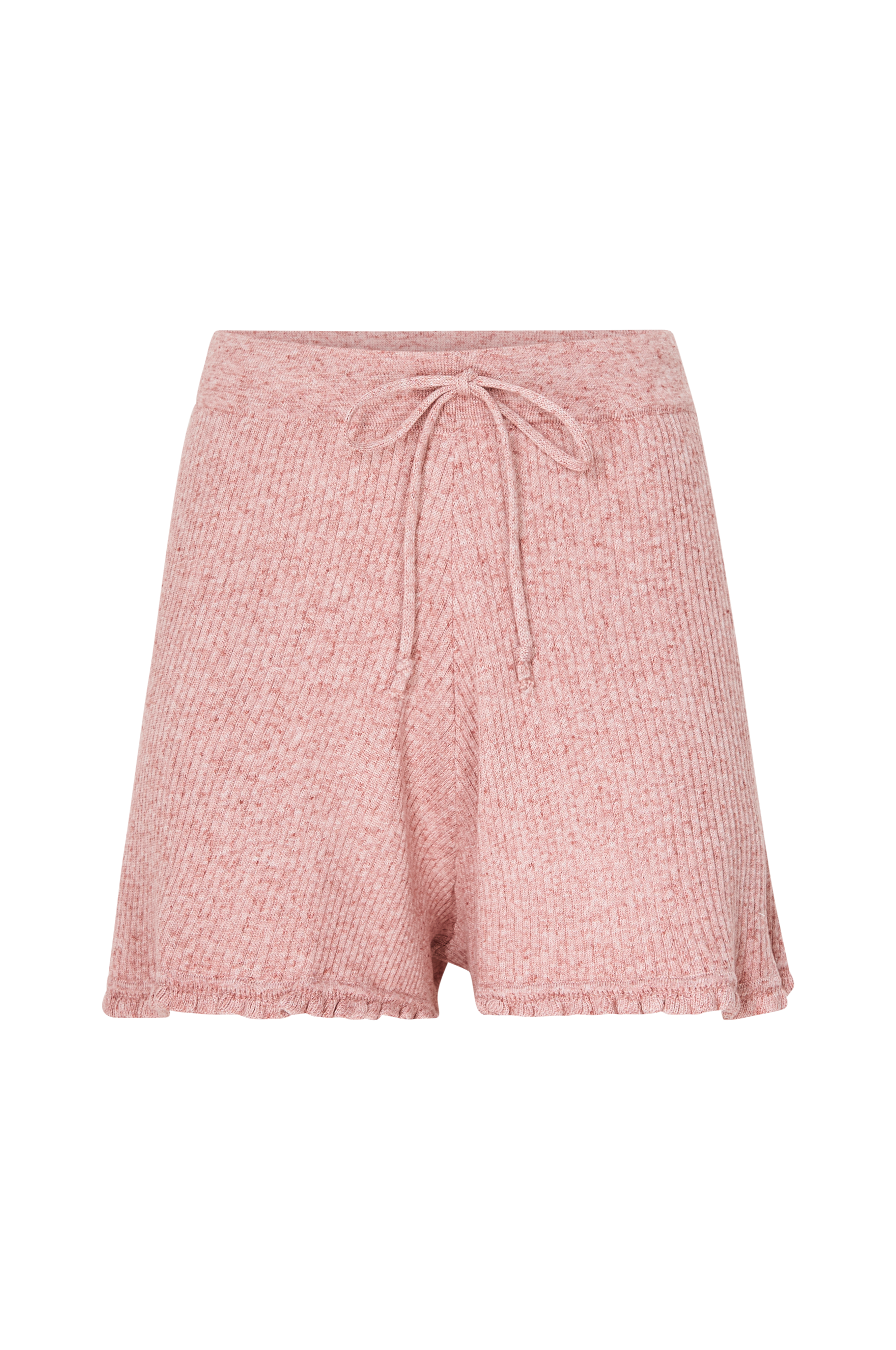 • Ribstrikket model• Elastisk talje med træksnørre• Rynkede benafslutninger