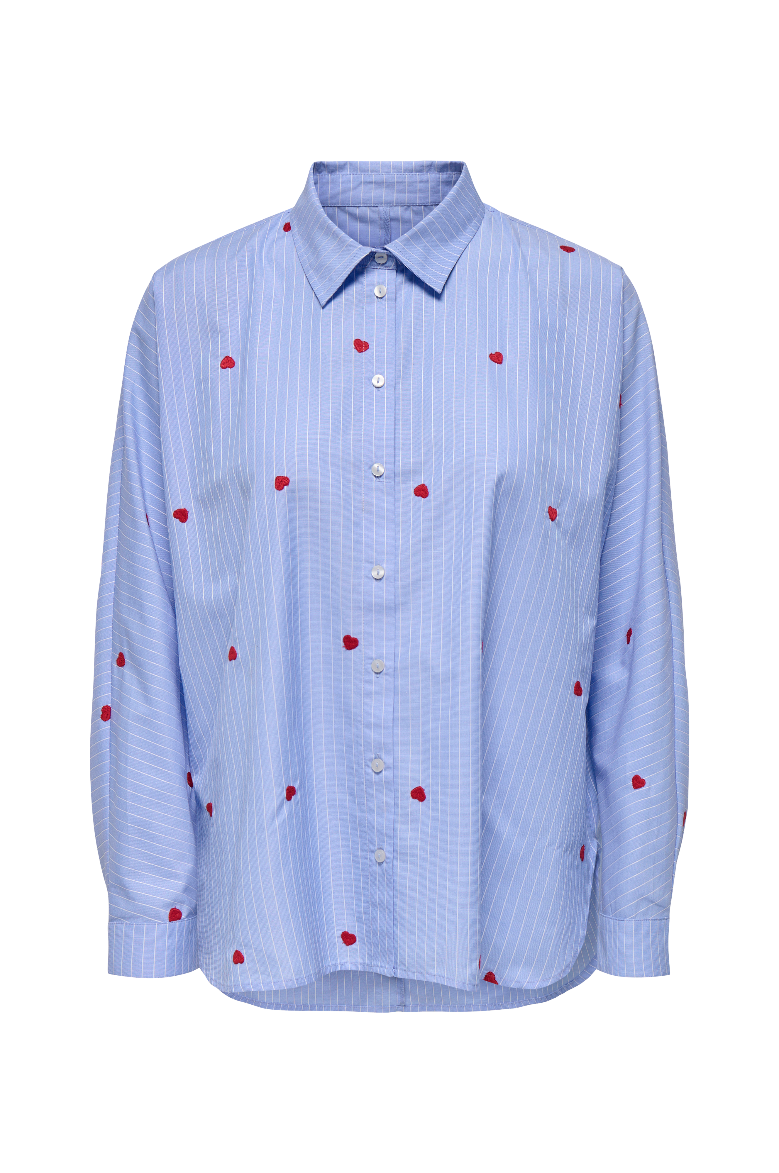 • Tynd skjorte med broderede hjerter overalt• Knapper foran• 3/4 lange ærmer med foldede ærmeafslutninger• Afrundet søm med lidt længere bagside