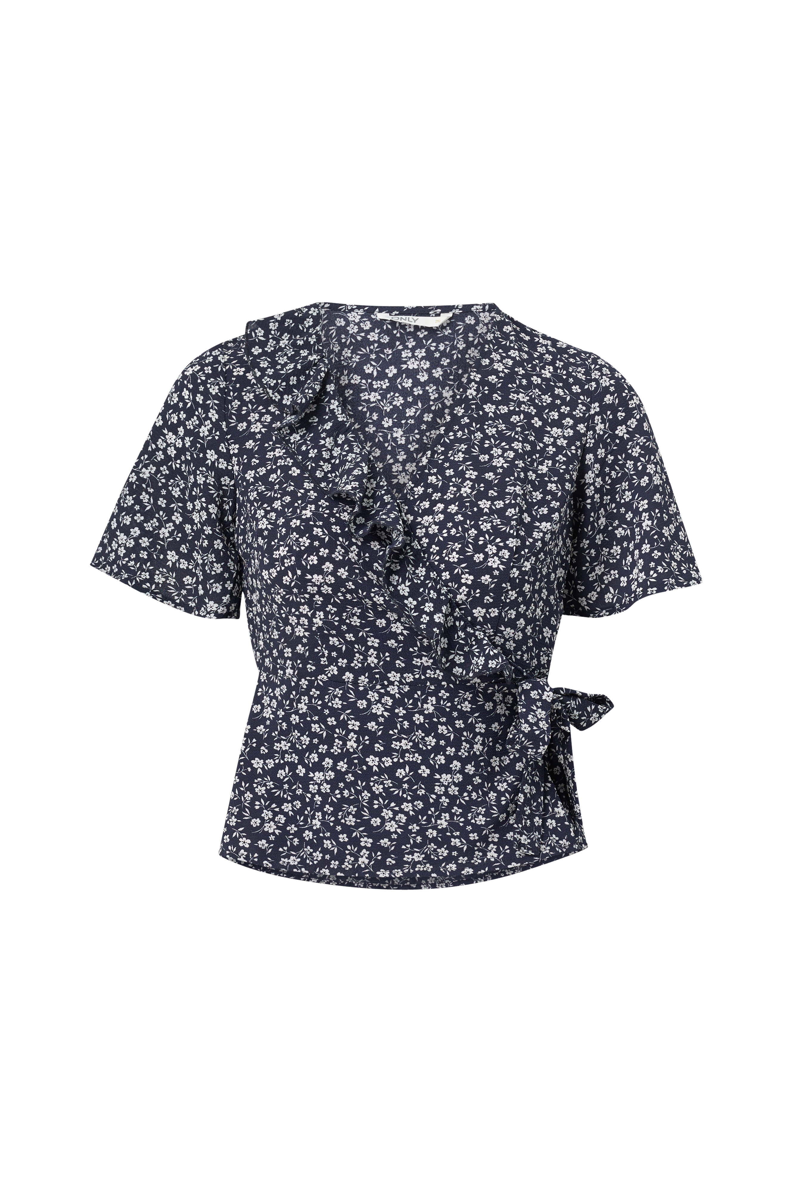 • Korte ærmer med svaj• Slå-om design med bindebånd i siden• Diagonal volant foran• Kreppet kvalitet
