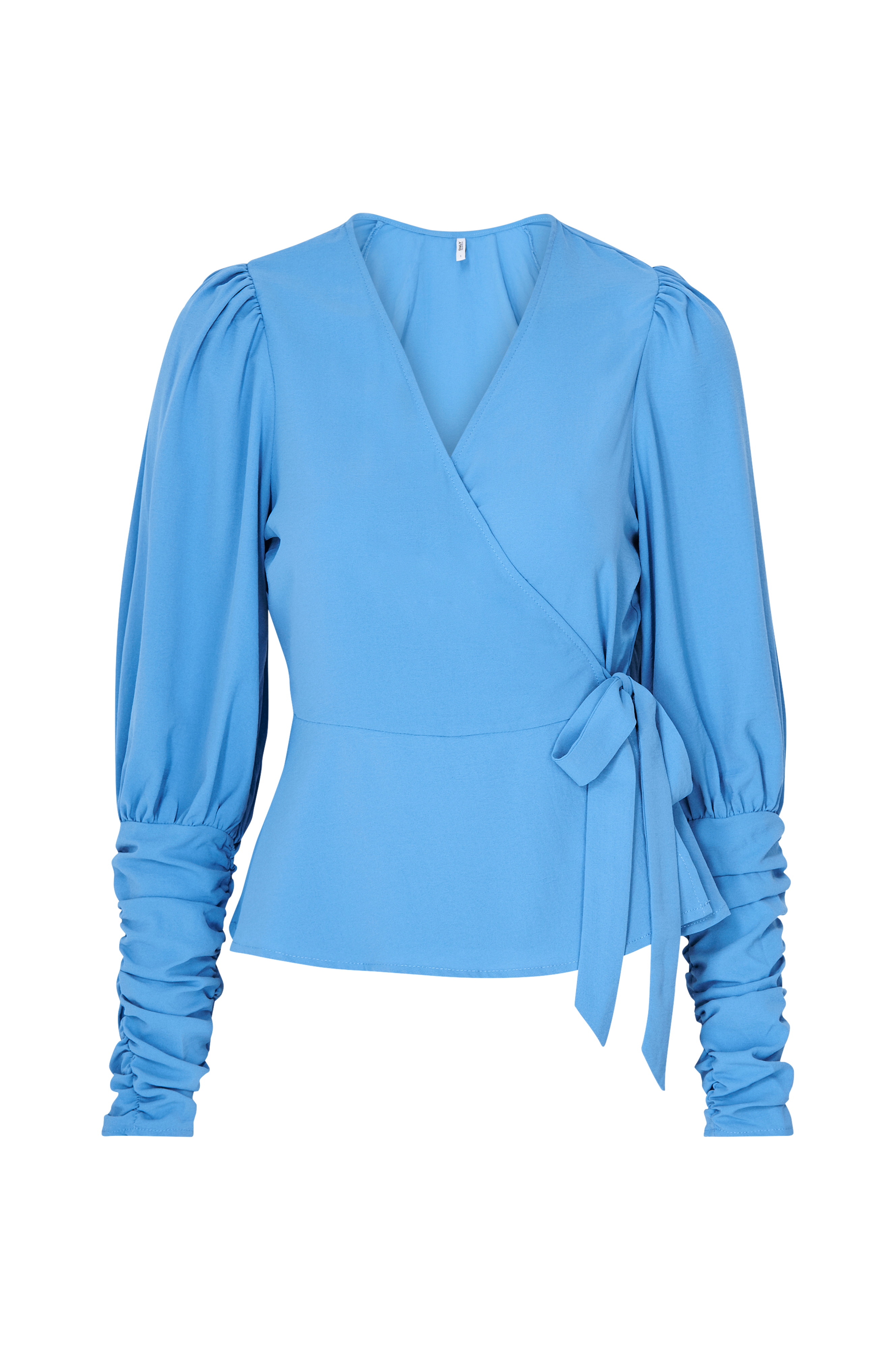 • Ballonærmer med tynd, rynket ærmeafslutning• Bindebånd ved taljen