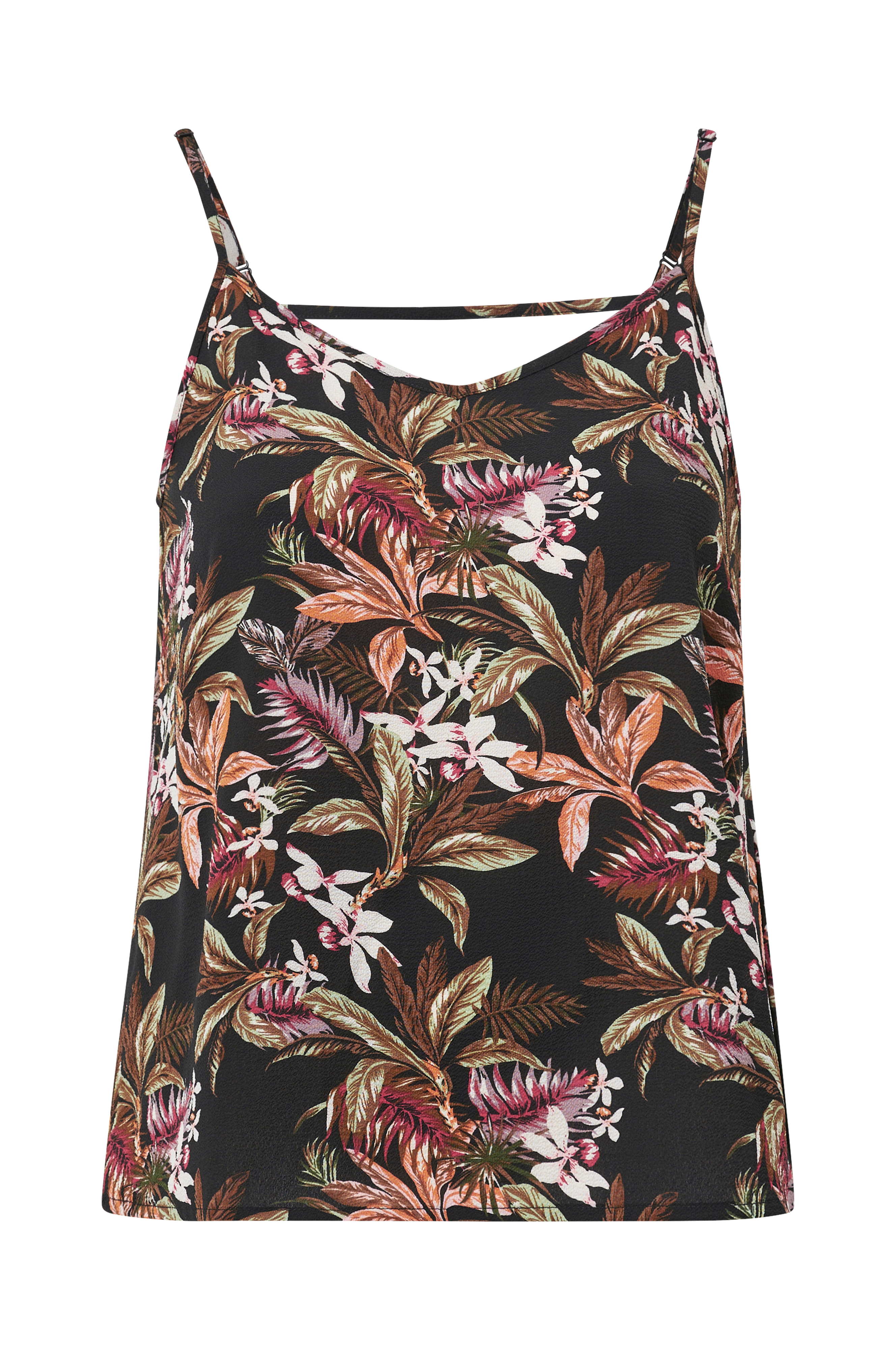 Stroptop i vævet, crepet kvalitet. Smalle justerbare skulderstropper. V-udskæring foran og bagpå samt dekorativt bånd foroven bagpå.