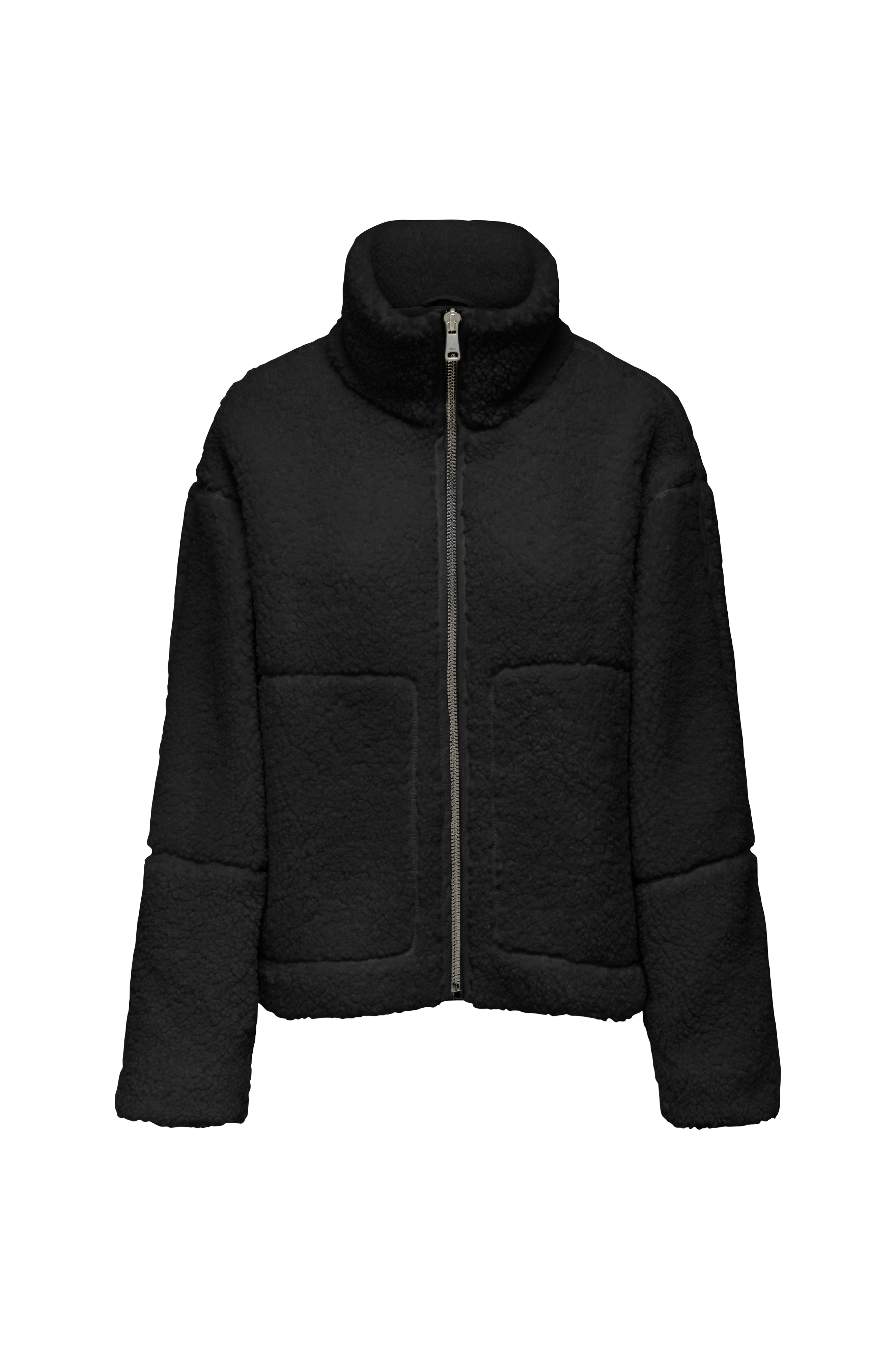 • Jakke i pile• Høj krave• Lynlåslukning• Tekstilforing• Sidelommer• Løs pasform• Længde: 60 cm i størrelse S