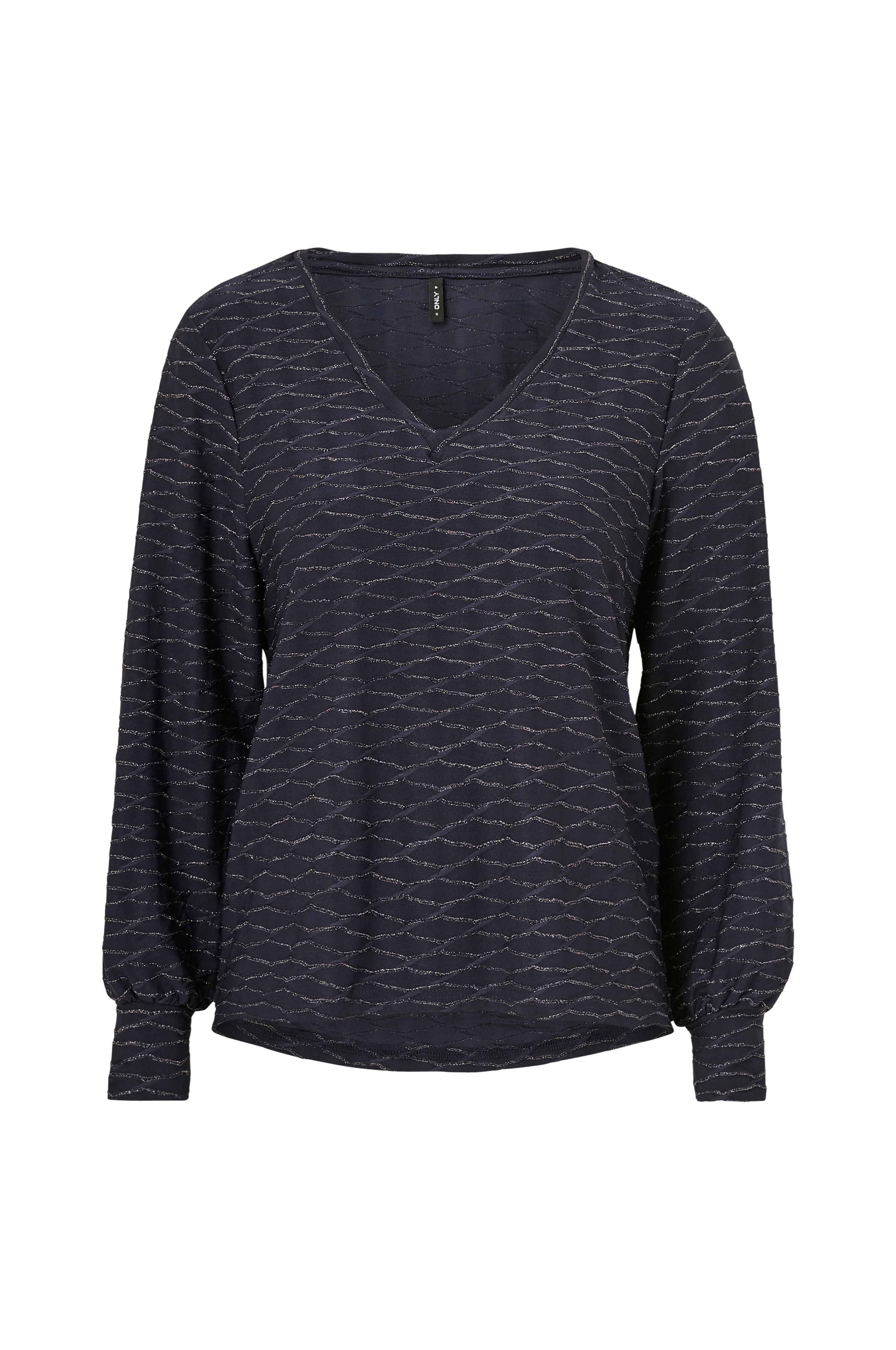 • Top med skinnende strukturmønster• V-udskæring• Manchet ved manchetterne