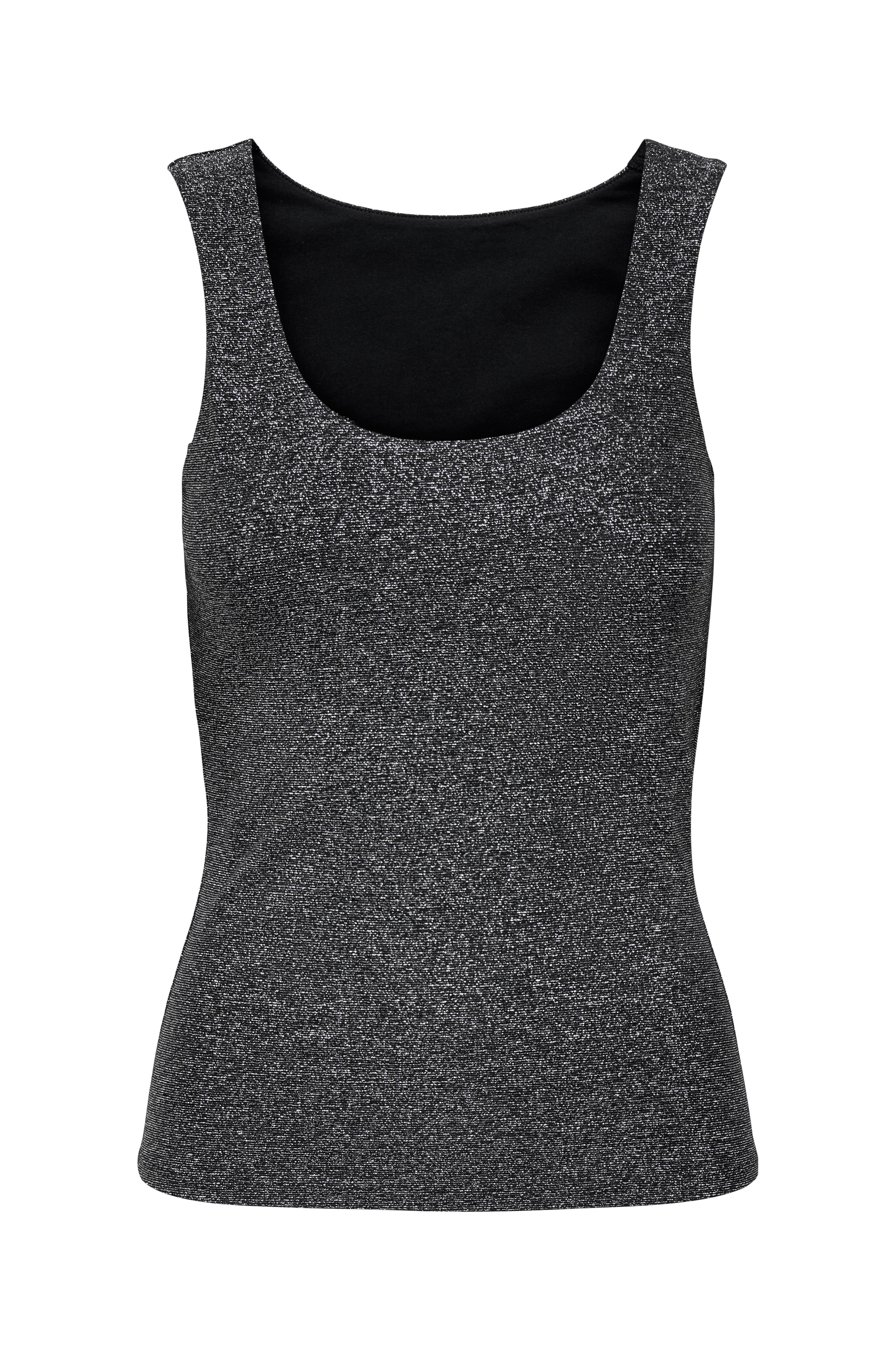 • Ærmeløs, glitrende top• Dyb u-udskæring• Normal pasform