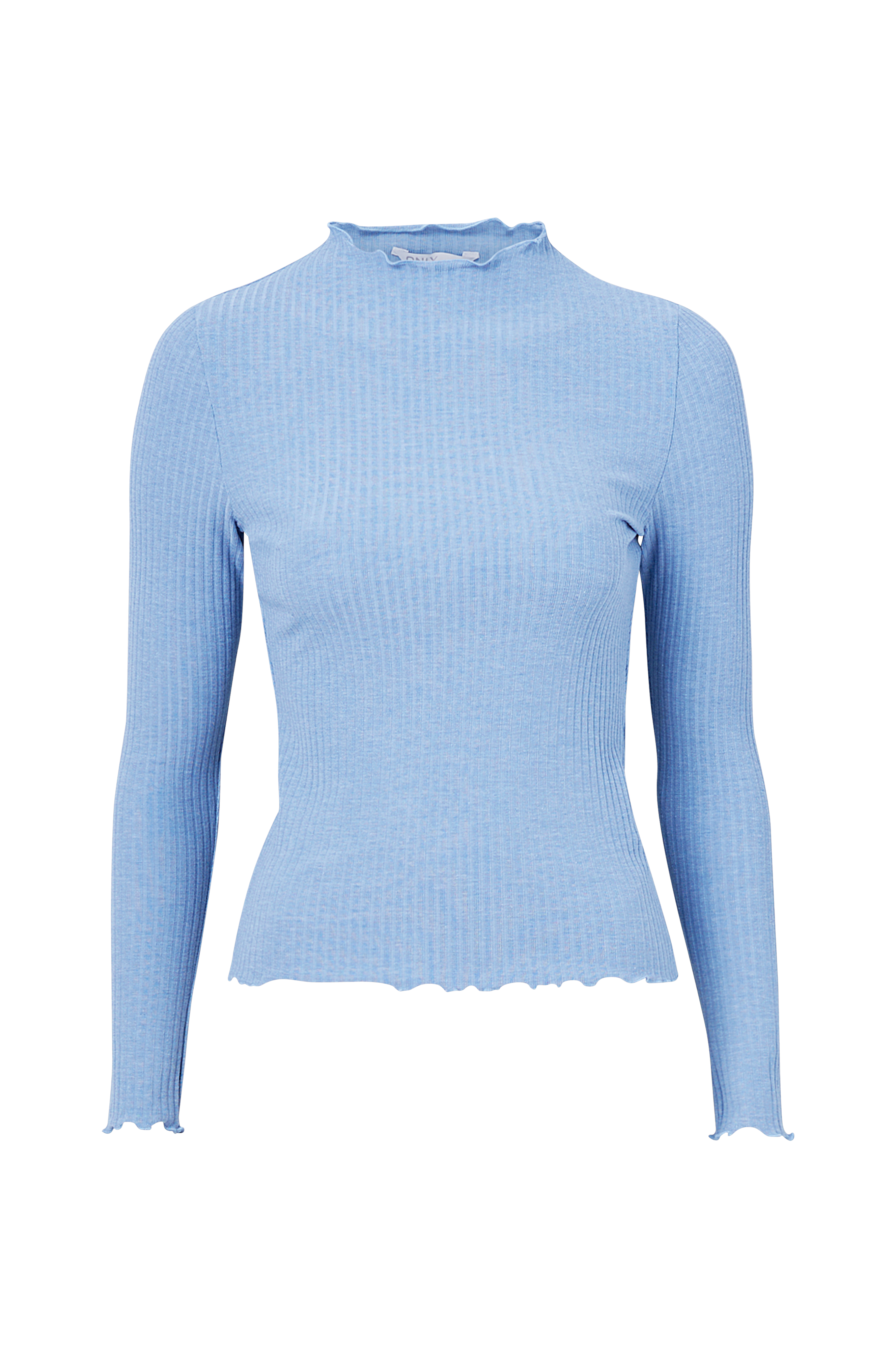 Købte denne fine top i en størrelse større end normalt. Sidder godt. Slank pasform på mig. Elsker farven. Meget tilfreds.