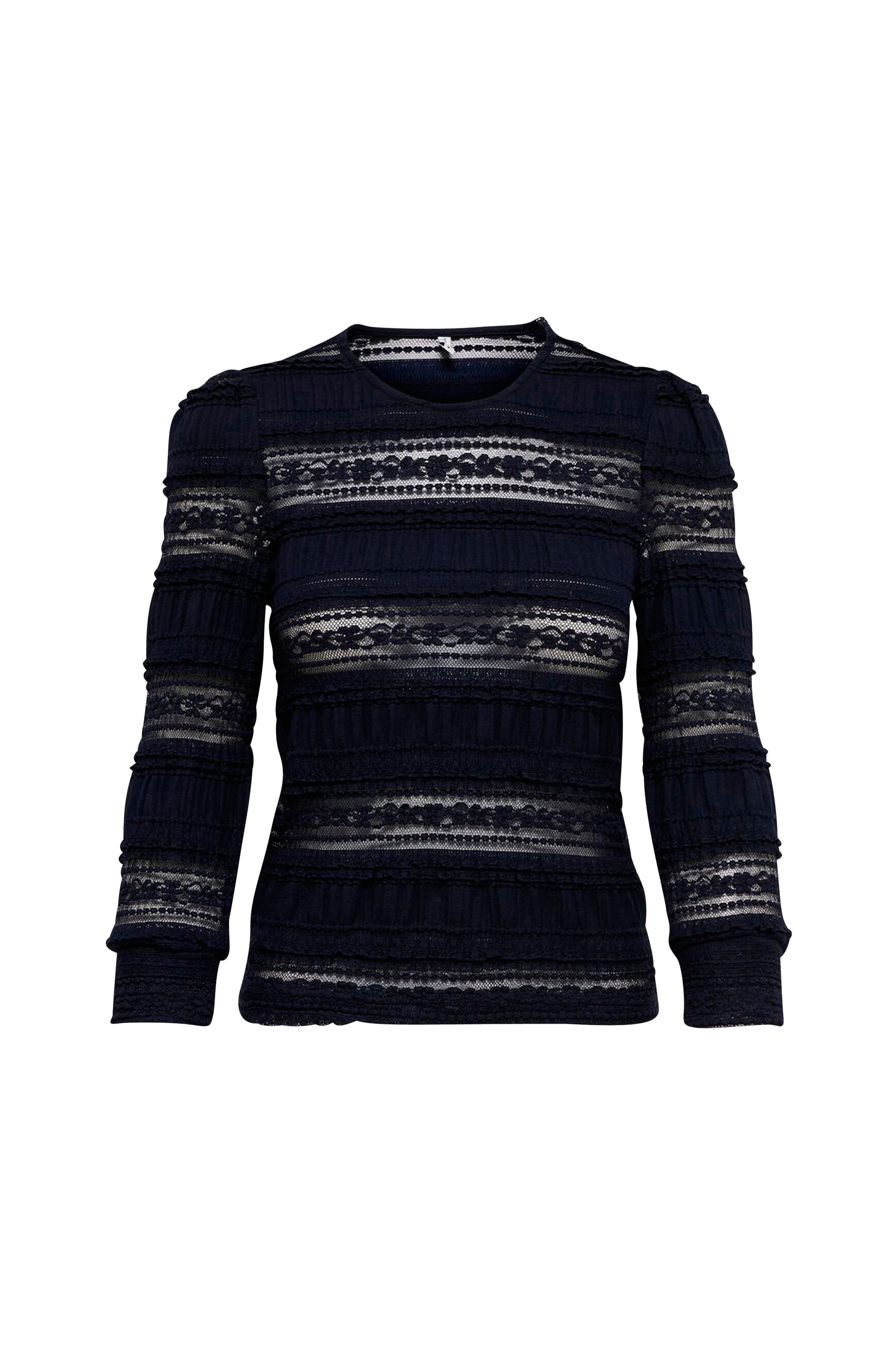 Top med transparente meshpaneler, vævede paneler og blondepaneler. 3/4-lange pufærmer med smalt ærmekant. Rund hals. Stretchkvalitet.