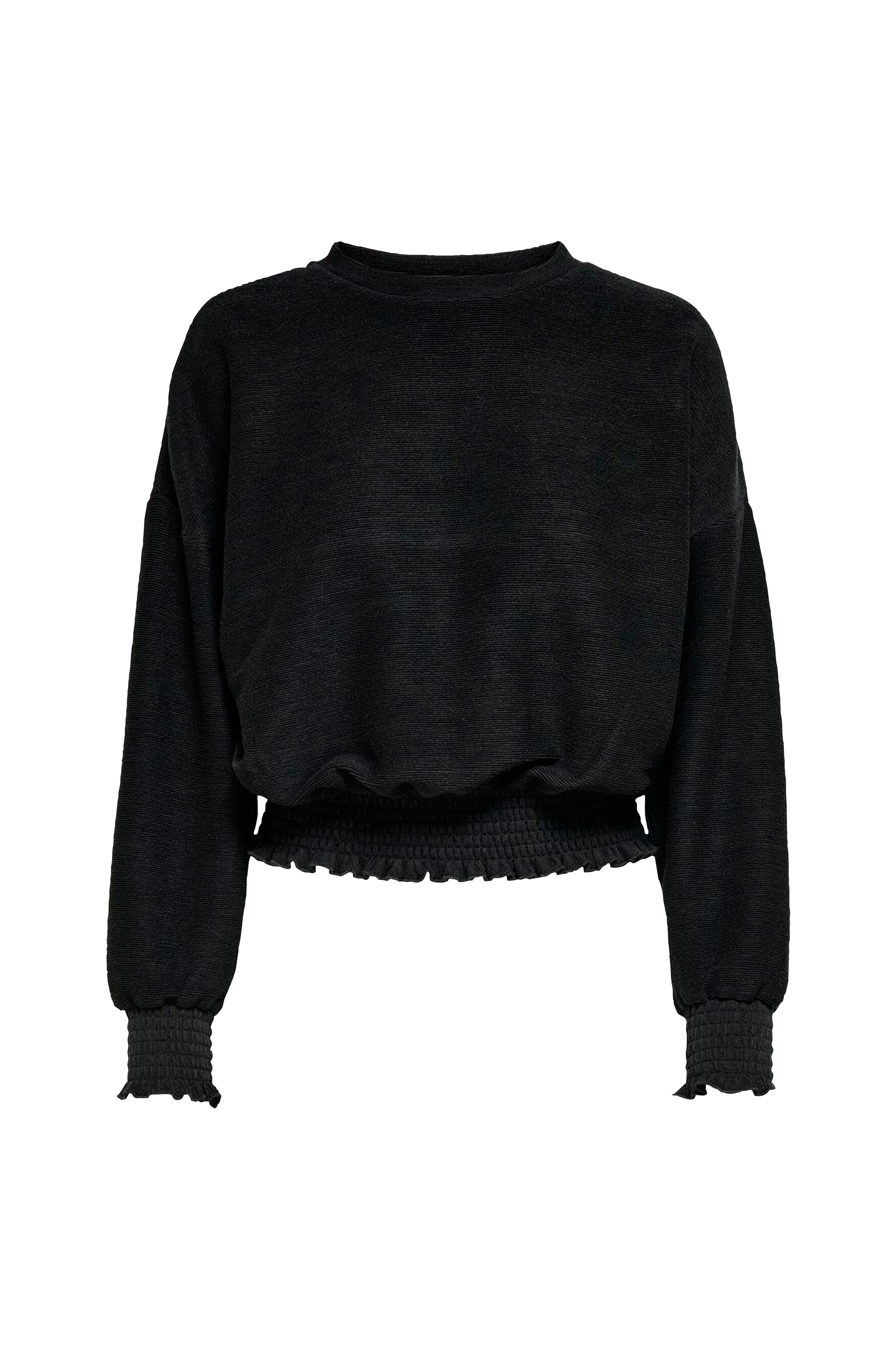 Top onlJenka L/S O-neck Top fra Only i kraftig jersey med struktur. Bred smockelastik i kanten forneden og i ærmekanterne. Løs, firkantet pasform med lav skulder.