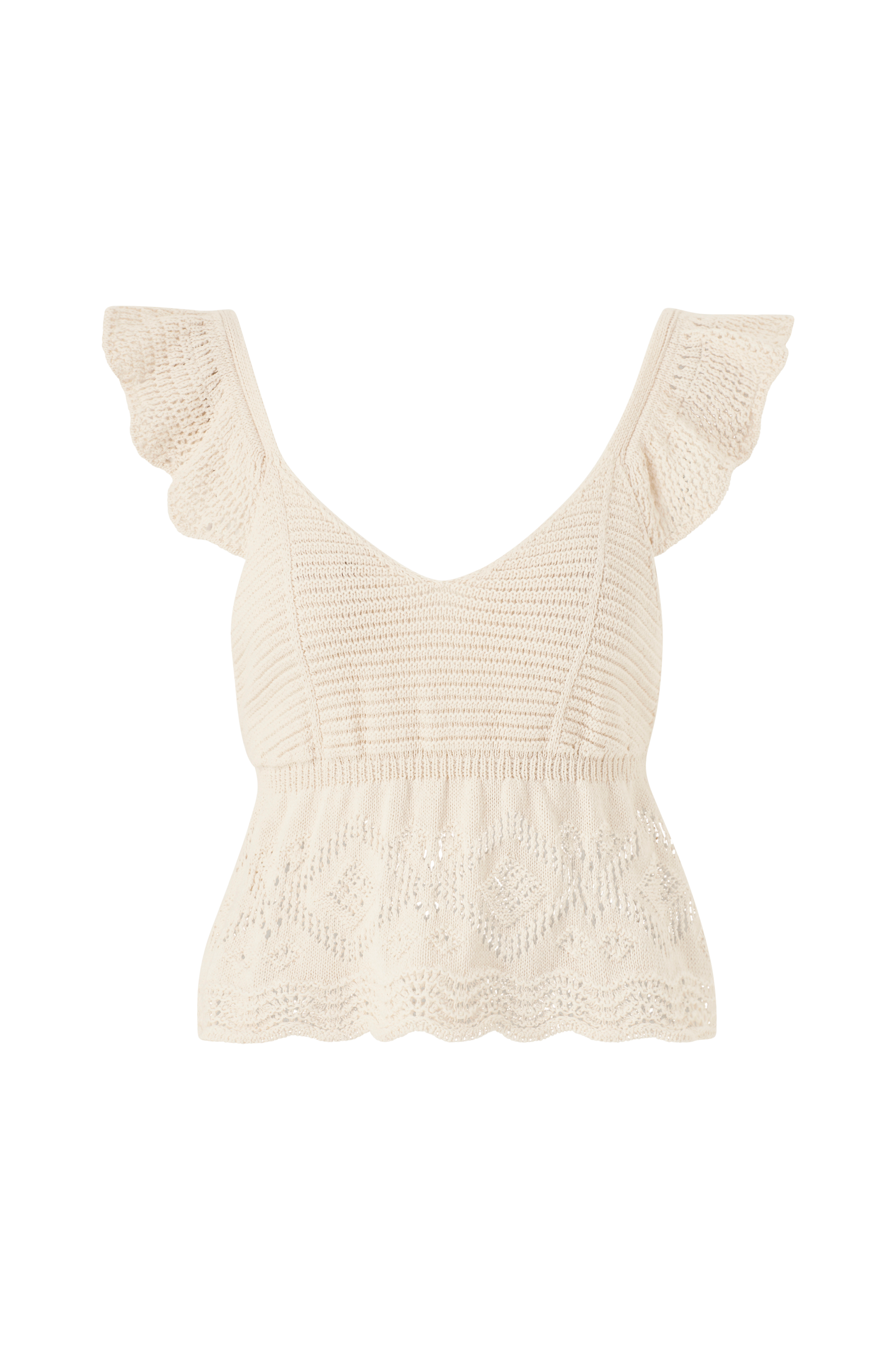 • Korte flagrende ærmer med hulmønster